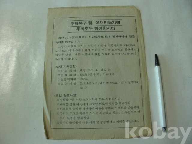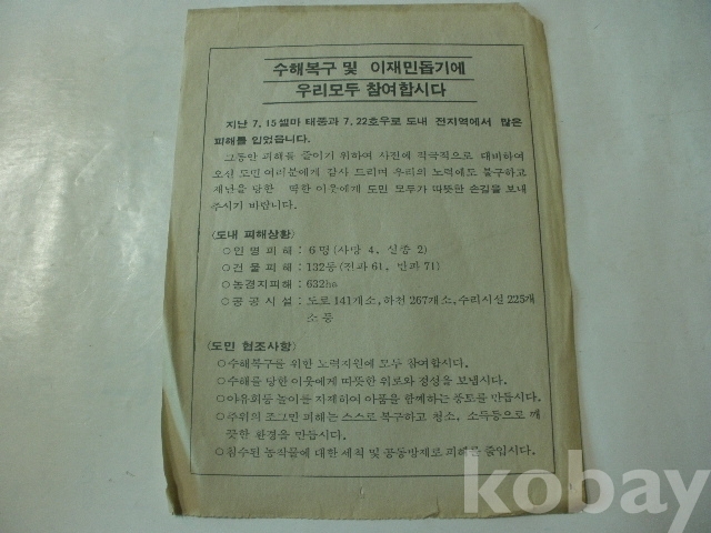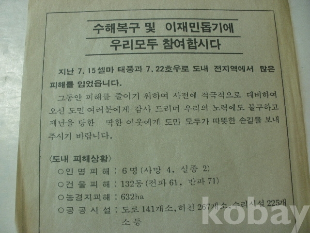 (셀마태풍, 1987년) 수해복구 및 이재민 돕기에 - 우리 모두 참여합시다