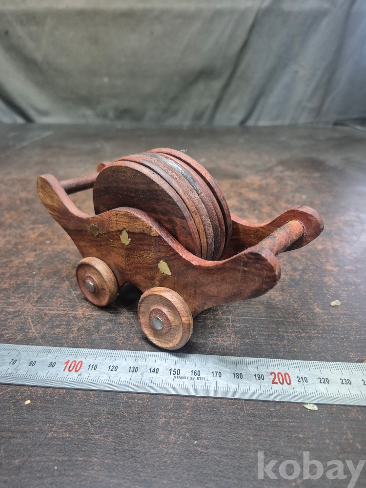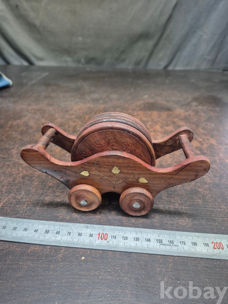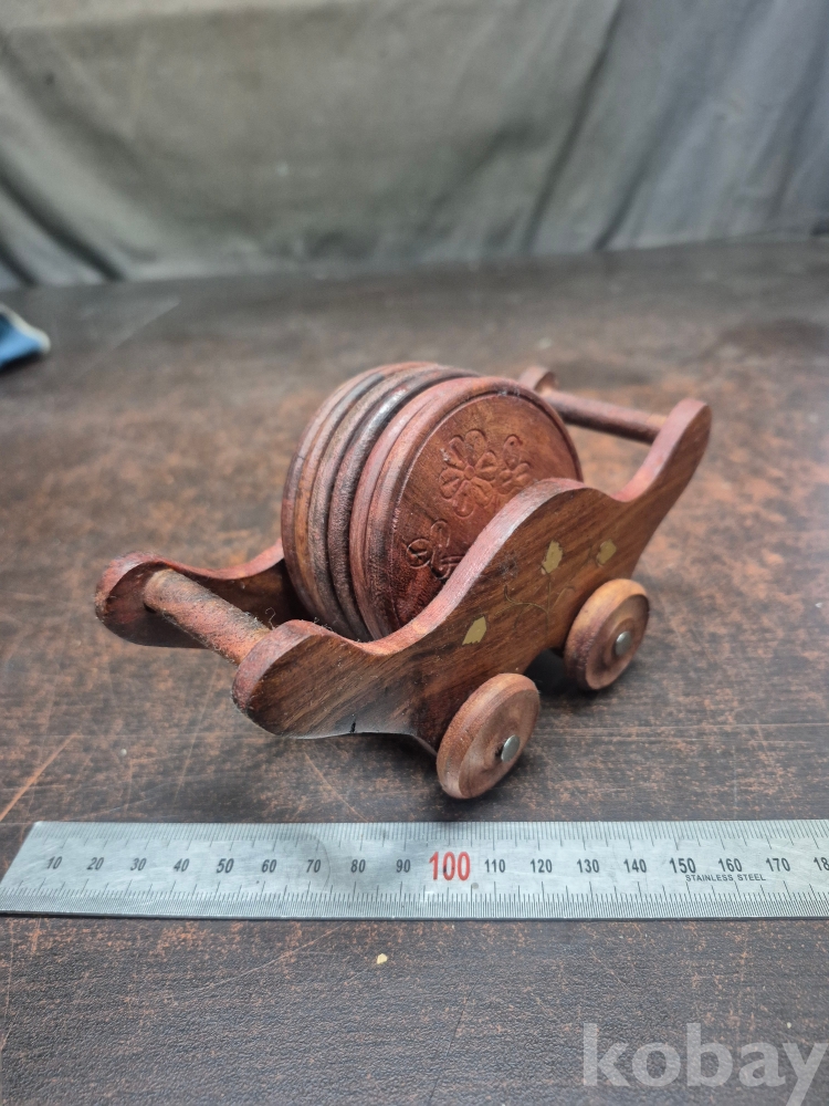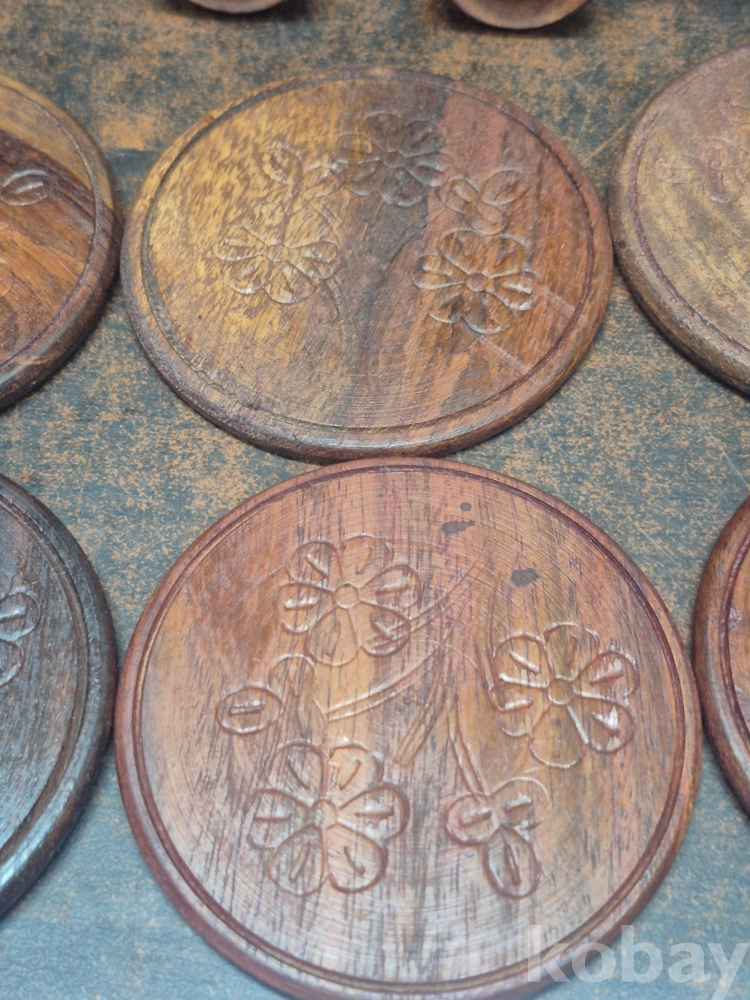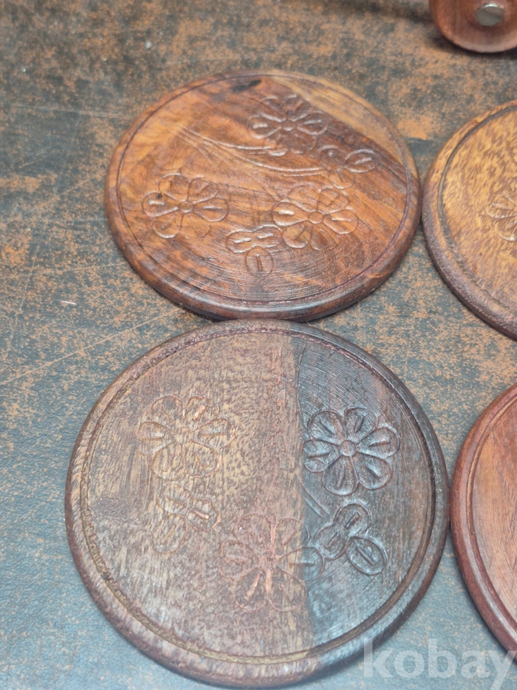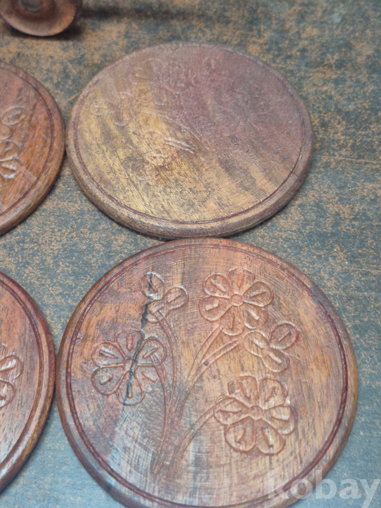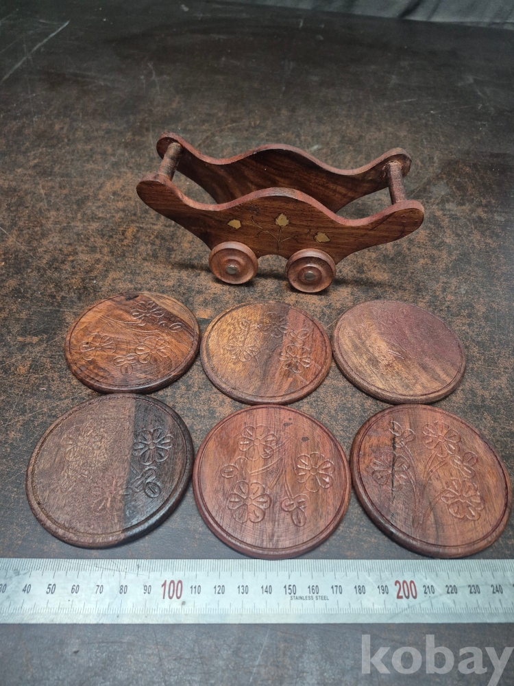 원목으로 깍아 만든 차 받침6점과 차받침걸이 17*6*10