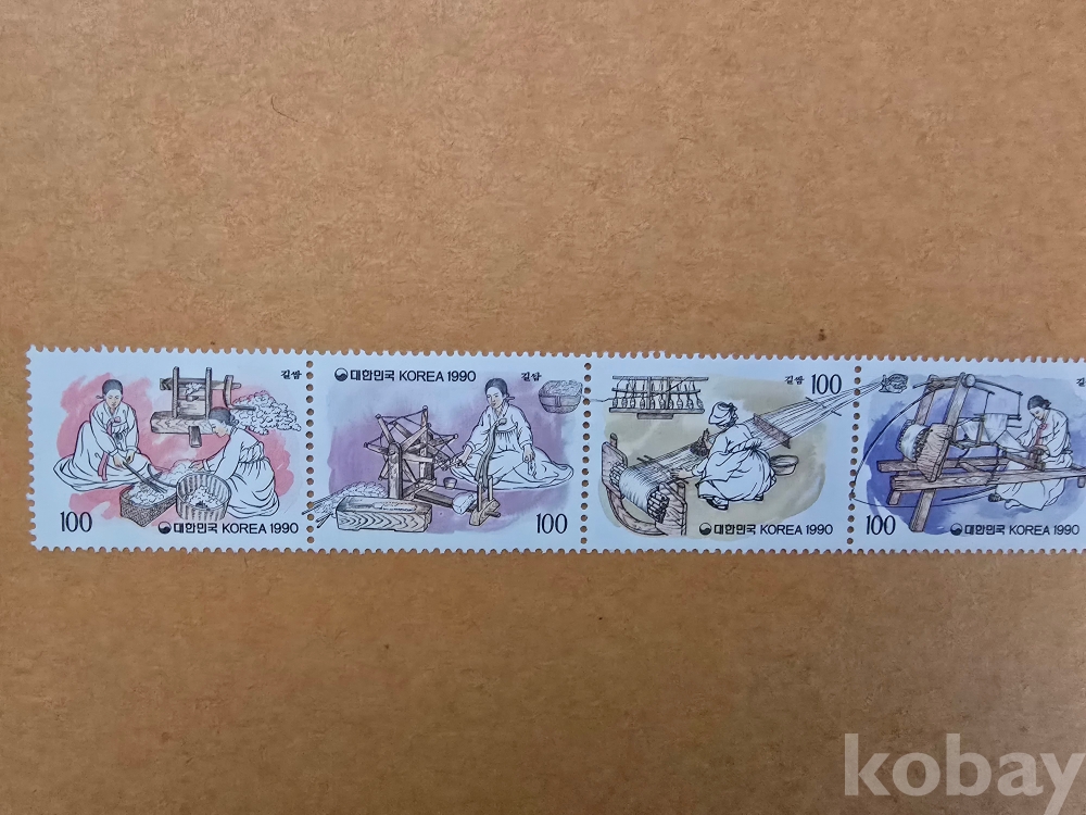 미사용 우표 4B/90'9.25 민속시리즈 7집 길쌈