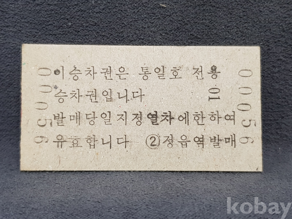 - 미사용 통일호 승차권(특정구간전용) " 정읍 ▶ 노안 " 2200원