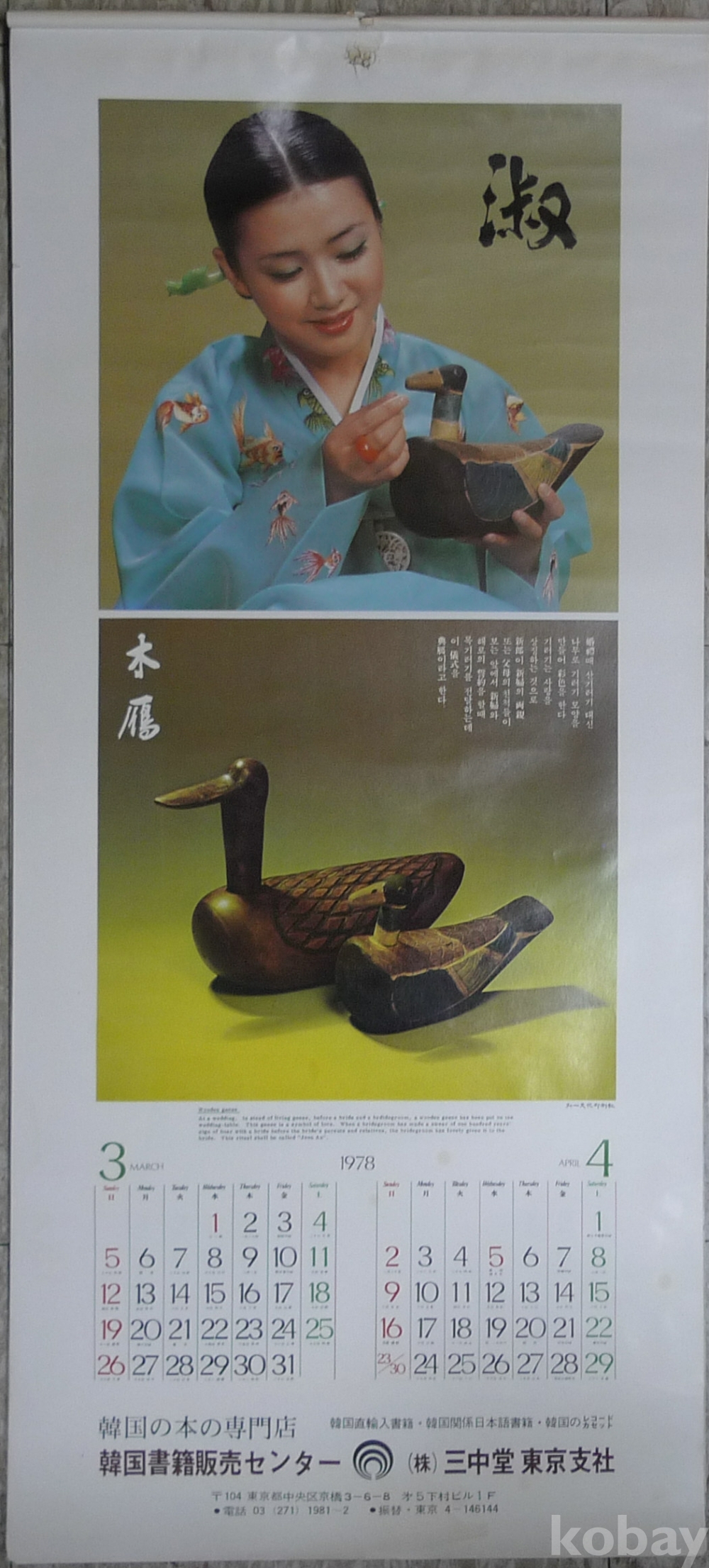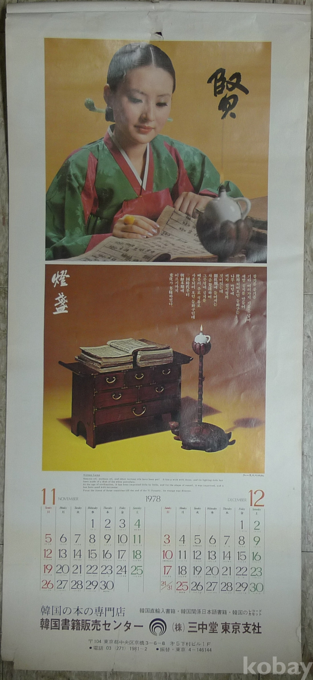 1978년 여성 탤랜트 모델 한국의 고전미 벽걸이 달력