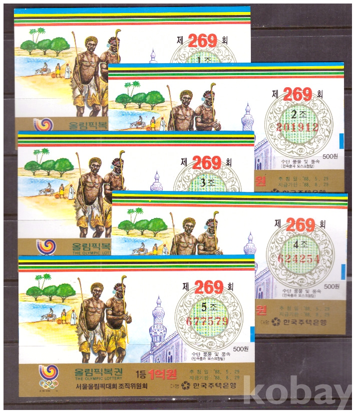 (서울올림픽) 1988 서울올림픽복권 제269회 1,2,3,4,5조 수단 풍물 및 풍속(민속춤과 모스크첨탑)