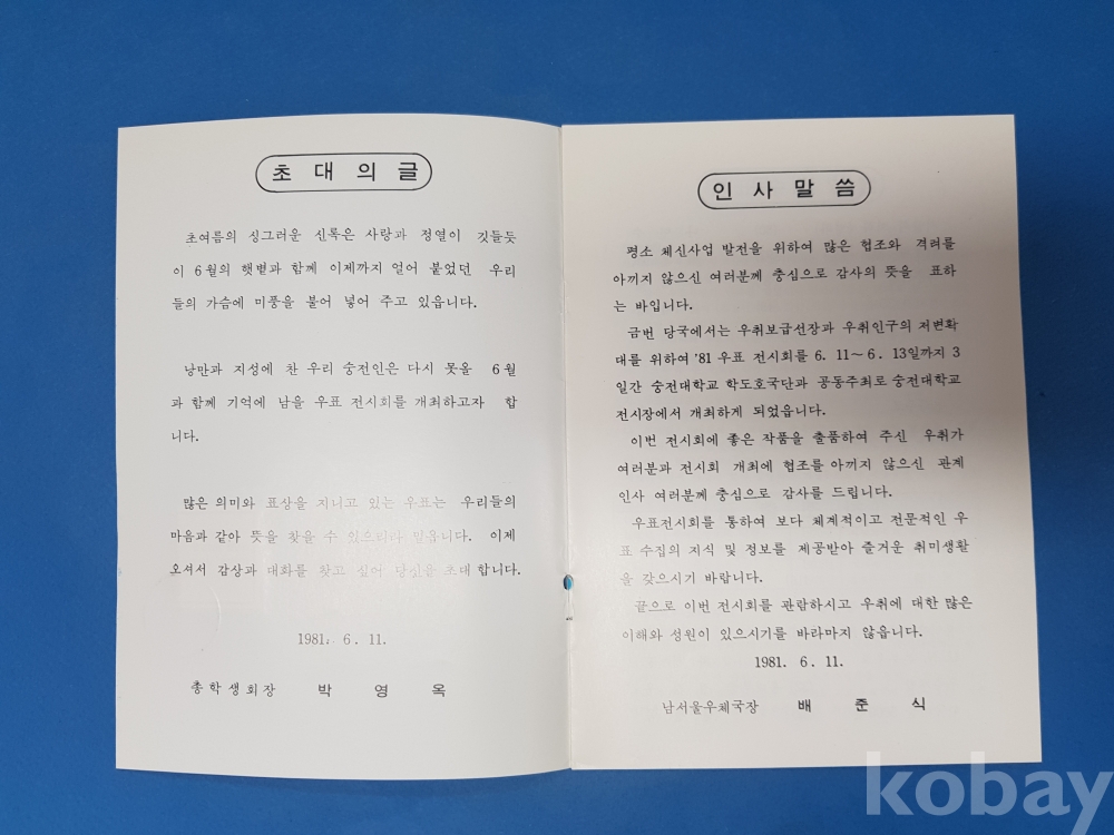 [m51] '81 우표전시회 팜플렛(숭전대학교전시장)*우표첩부 철인*SOONGJUNDAE,11.VI.81