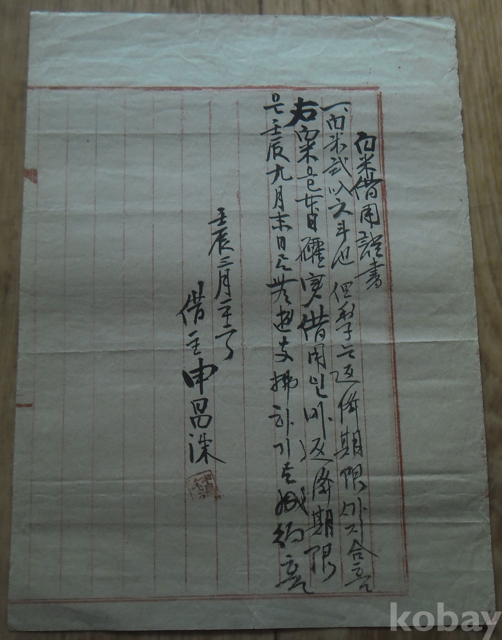 필사 백미차용증서