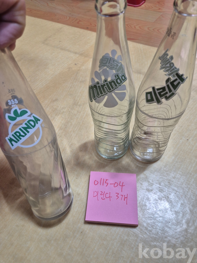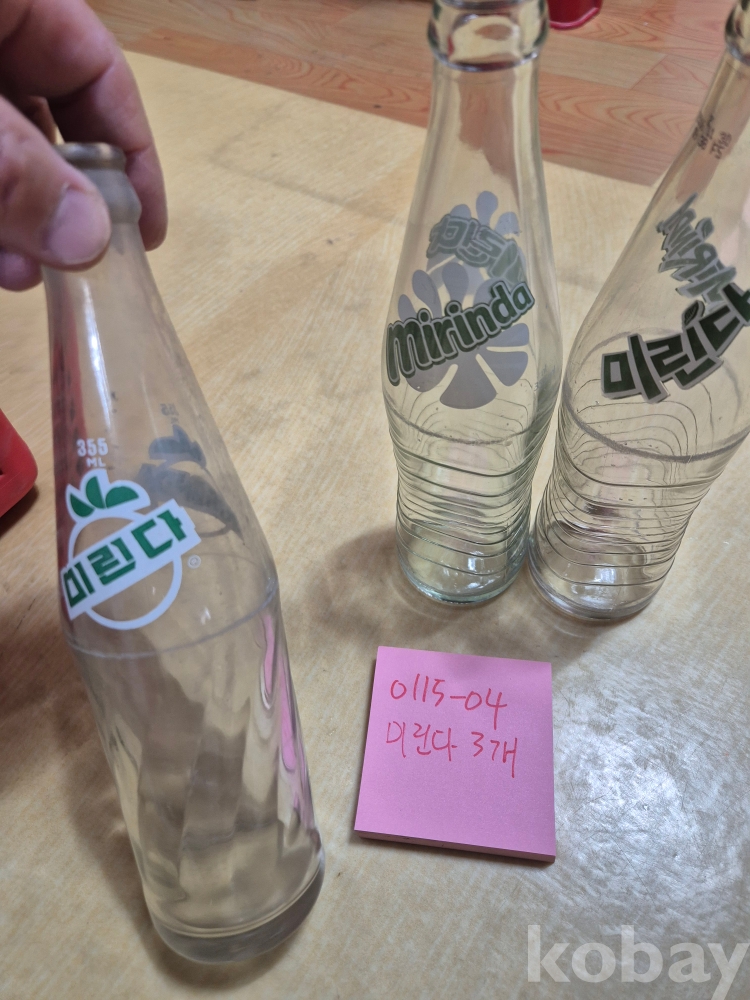 0115-04 음료수병 미린다병 빈병 3개 (근현대사 추억소품 전시용품 학교관련물품)