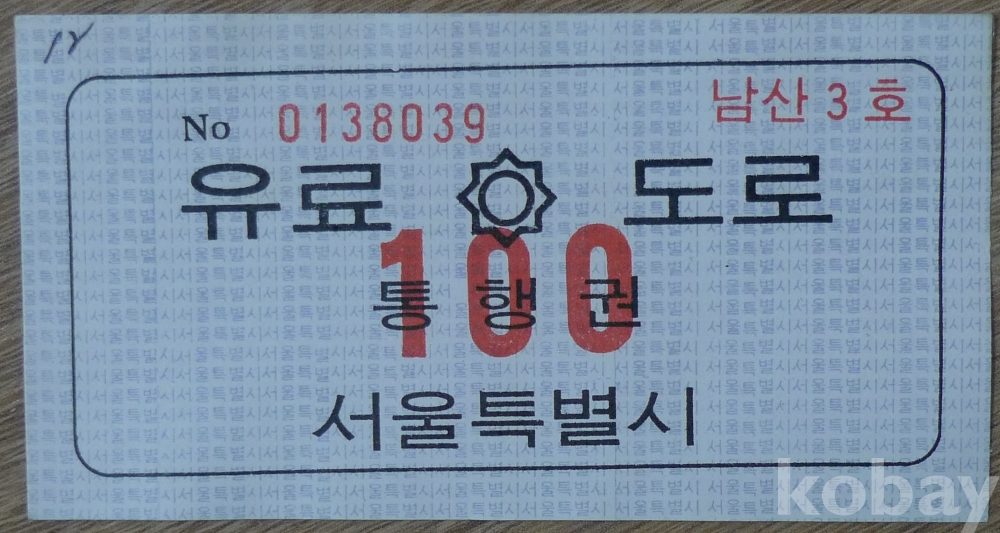 1978년 서울 남산3호 터널 유료 도로 통행권