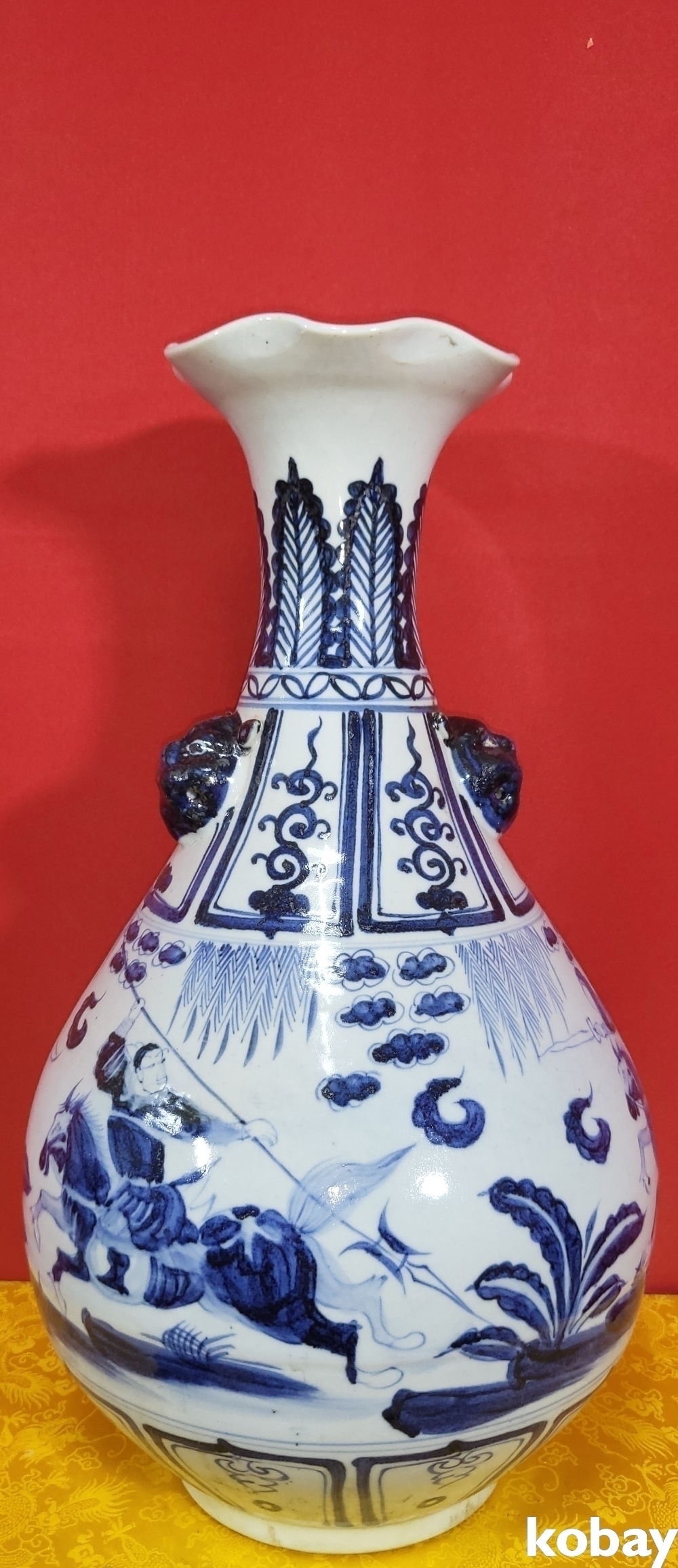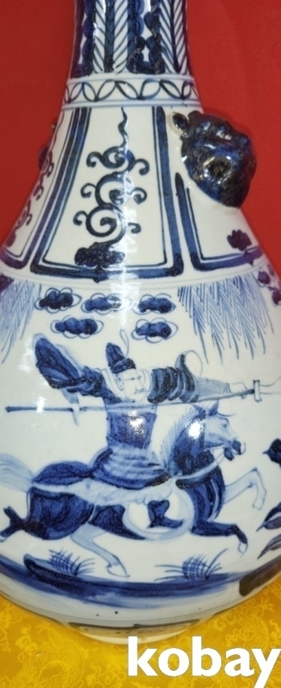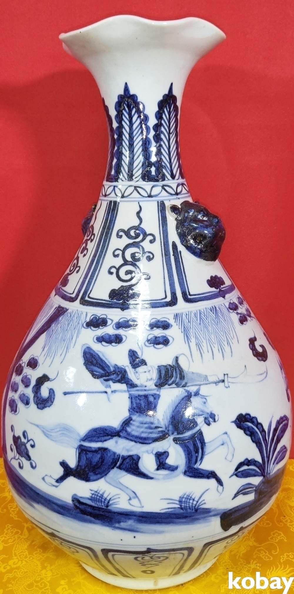 징기스칸 관지 청화 무사( 武士圖)문양 큰 양이 화형 광구병입니다,