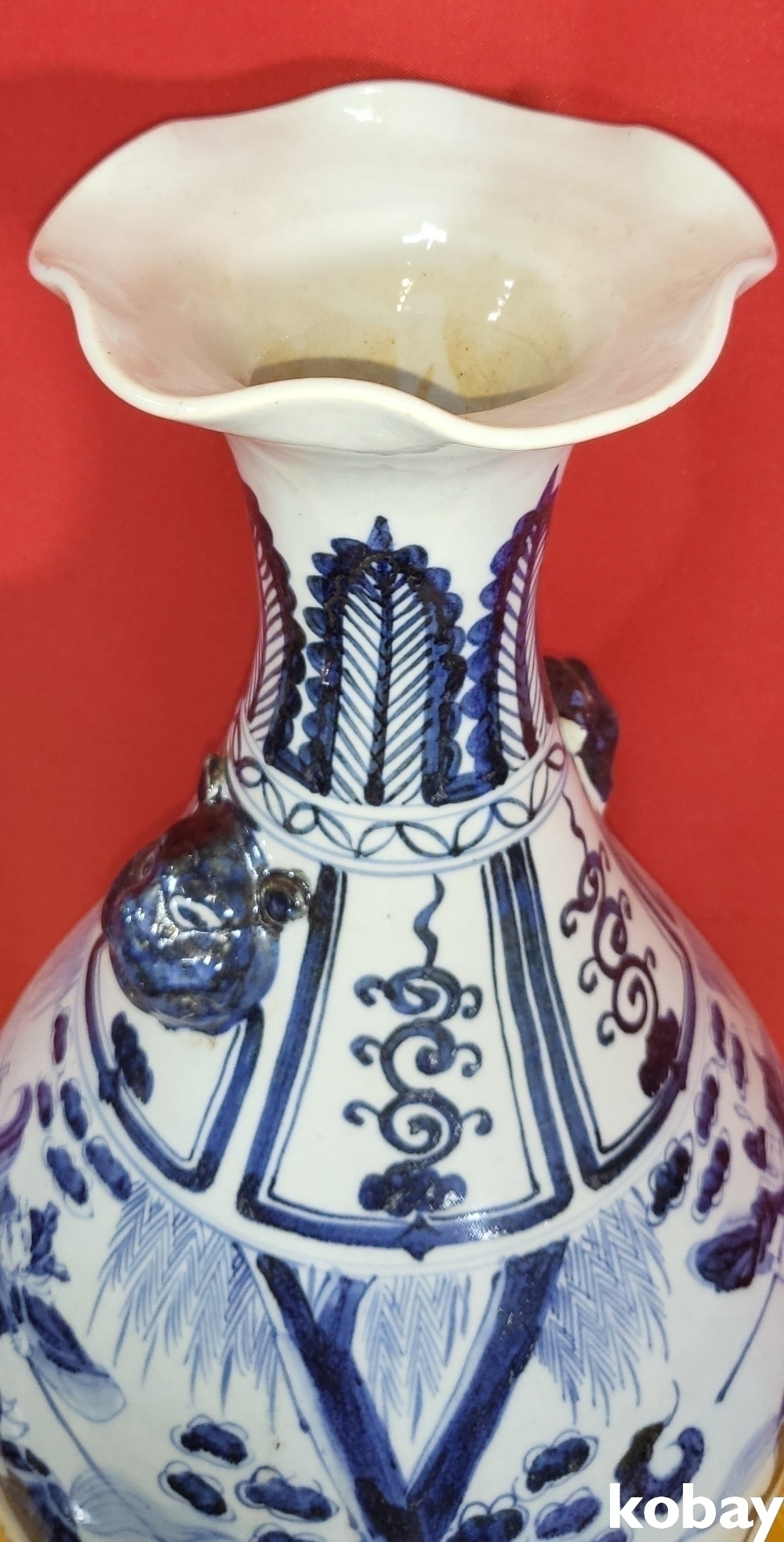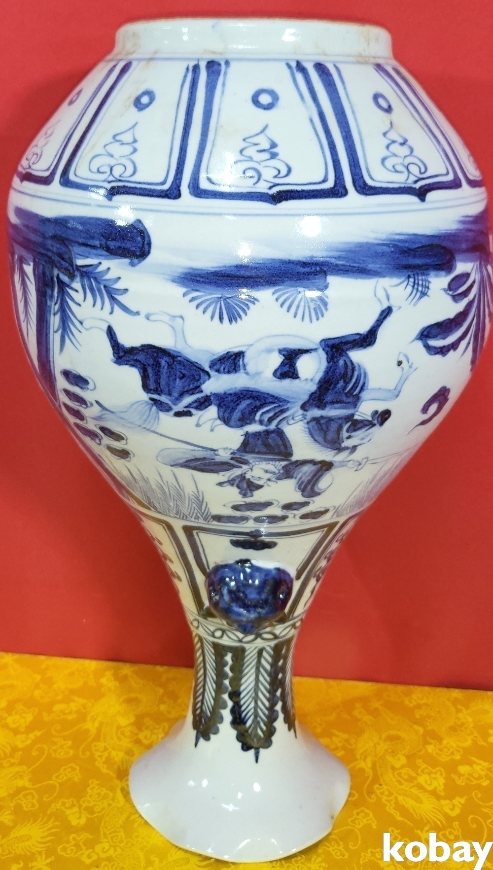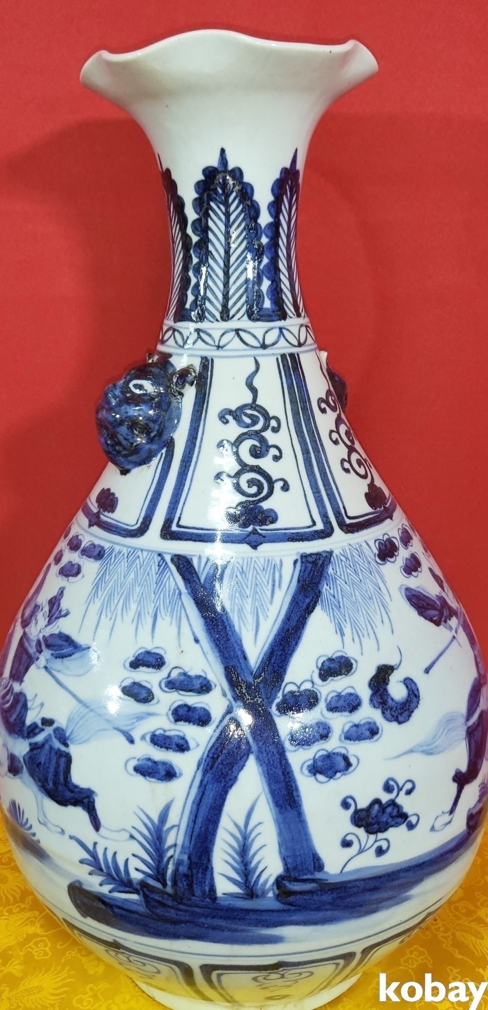 징기스칸 관지 청화 무사( 武士圖)문양 큰 양이 화형 광구병입니다,
