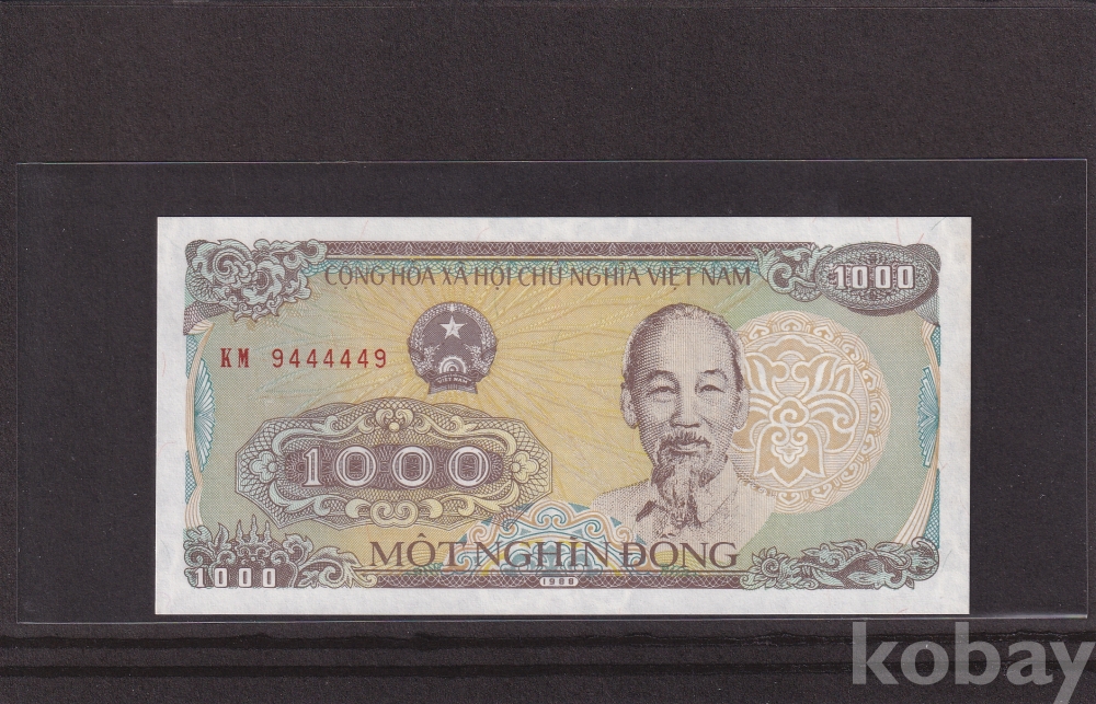 *베트남 특이번호 지폐 모음展* 1988년 1000동 KM 9444449 - 5봉 레이더 미사용 지폐