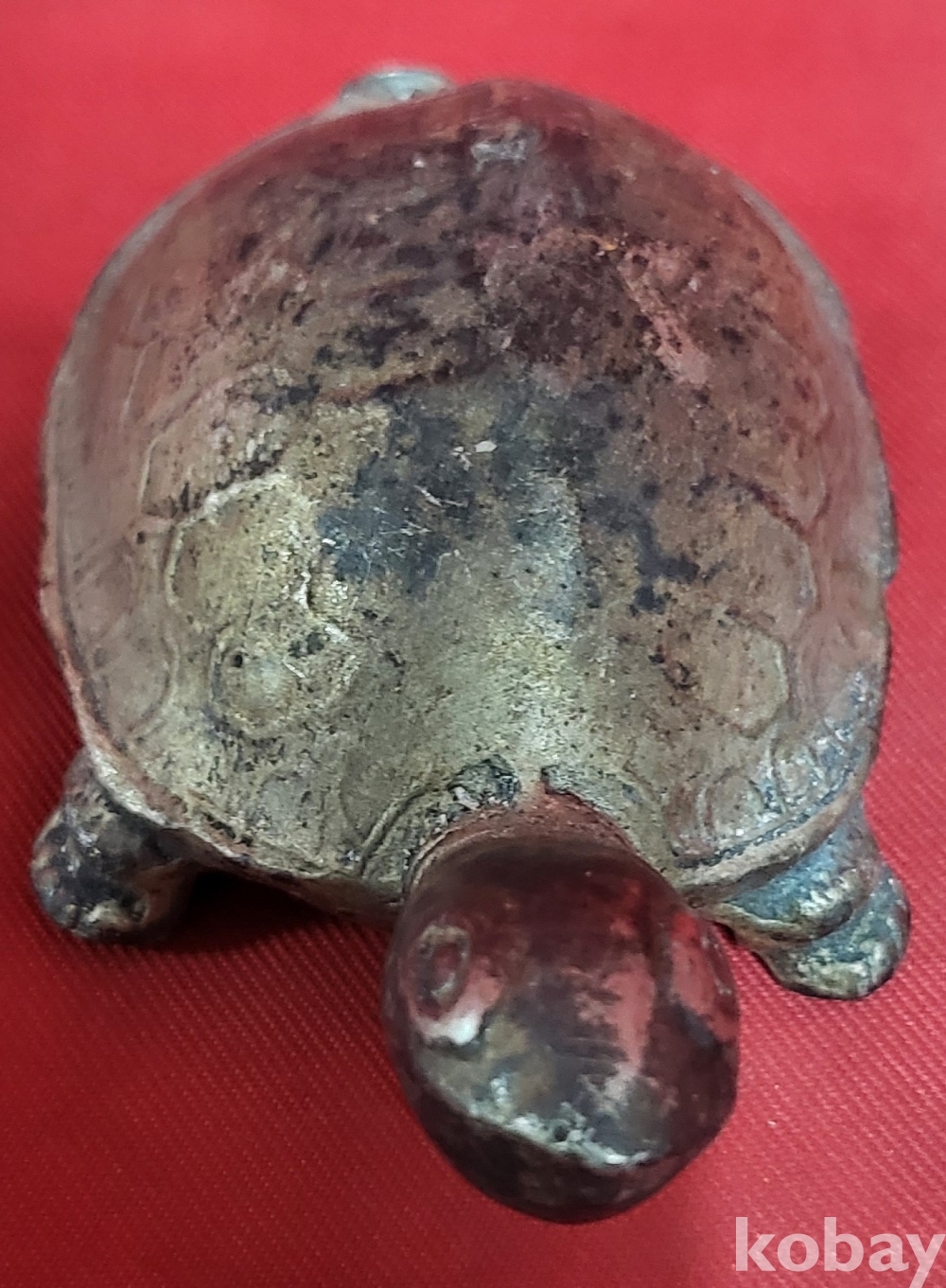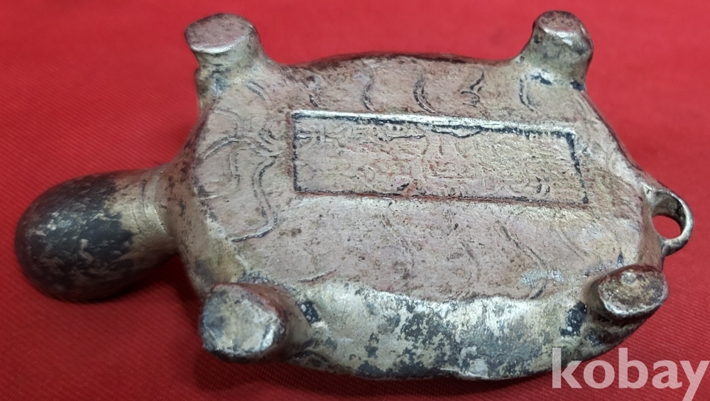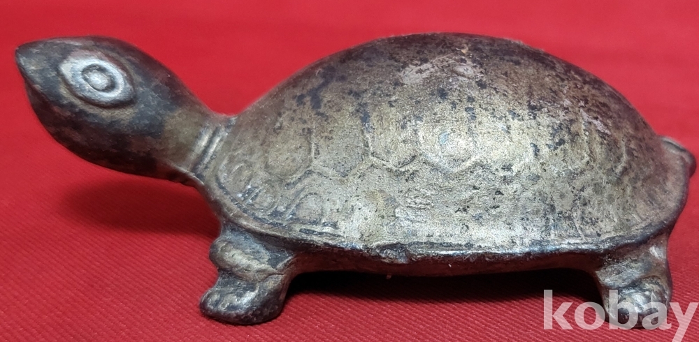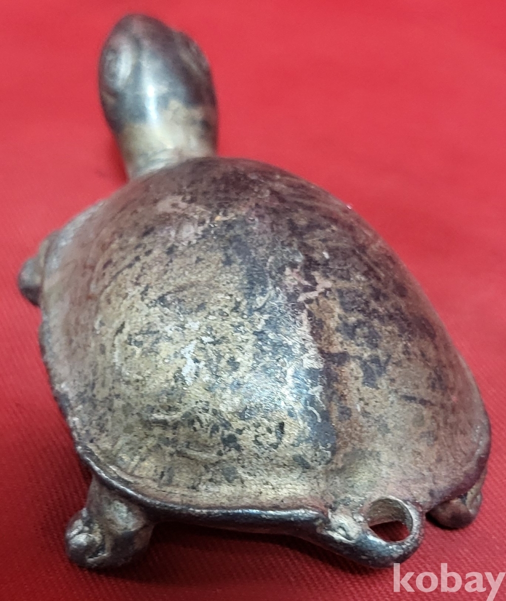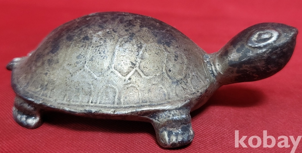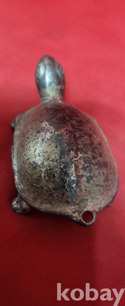은색 물질로 만든 거북이 조각품입니다,