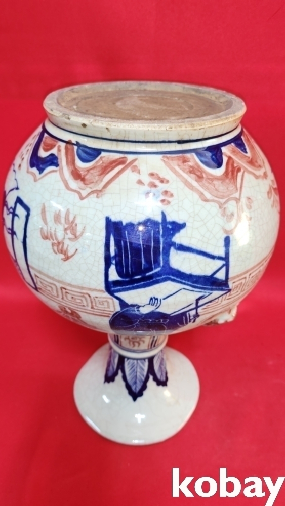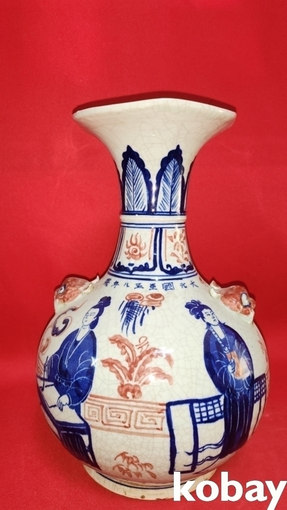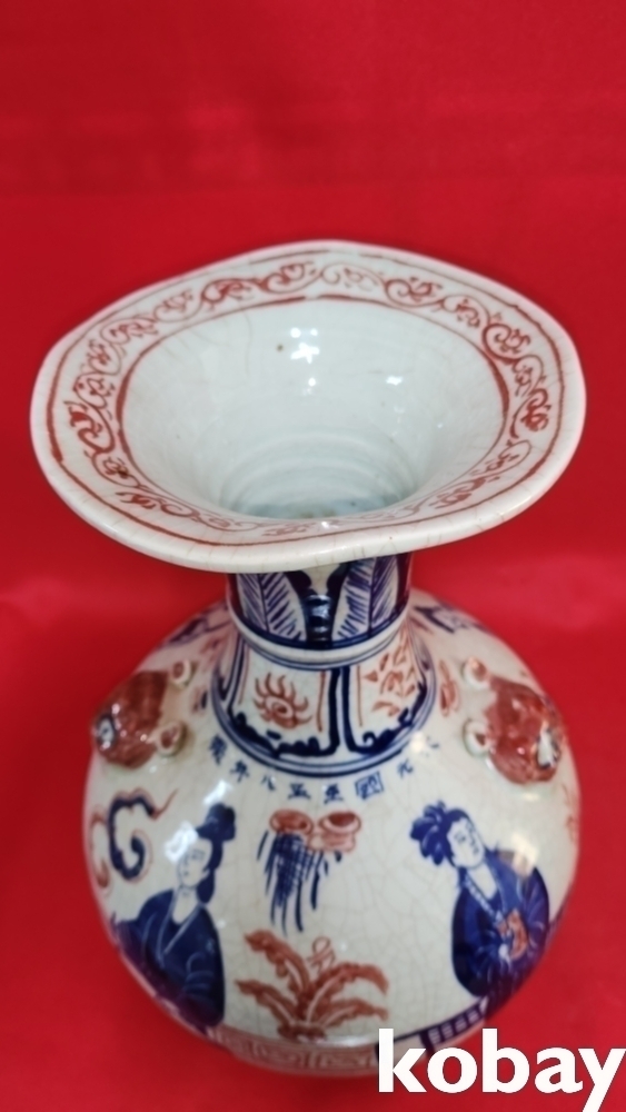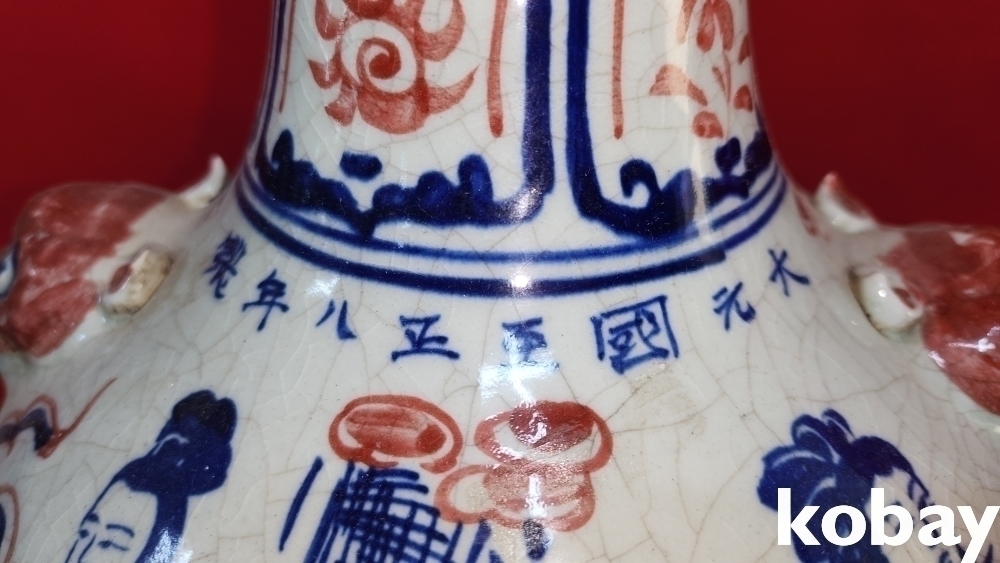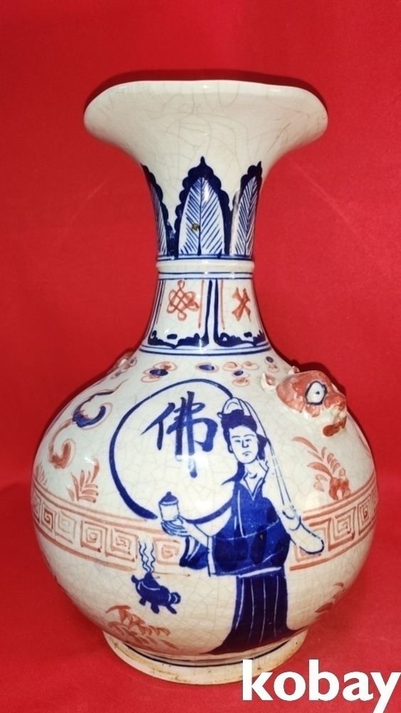 대원국지정8년제 청화 유리홍 양이(兩耳) 인물.불(佛)문양 화형 광구병입니다, 상태는 좋습니다