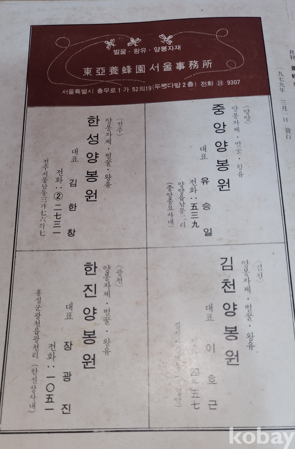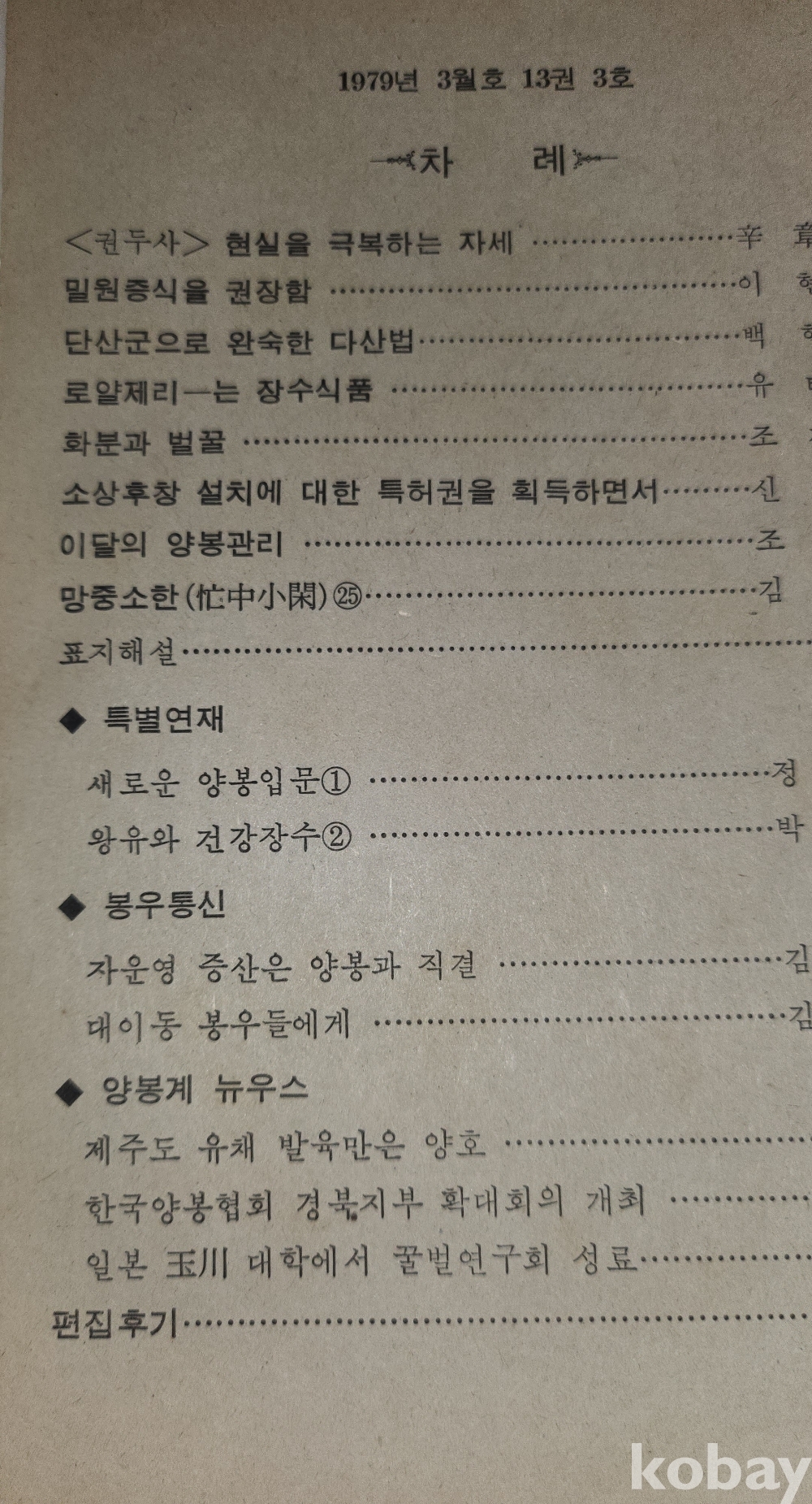 1979 년에 발행된 양봉계(養蜂界) 양봉계사 발행 3 월호입니다,