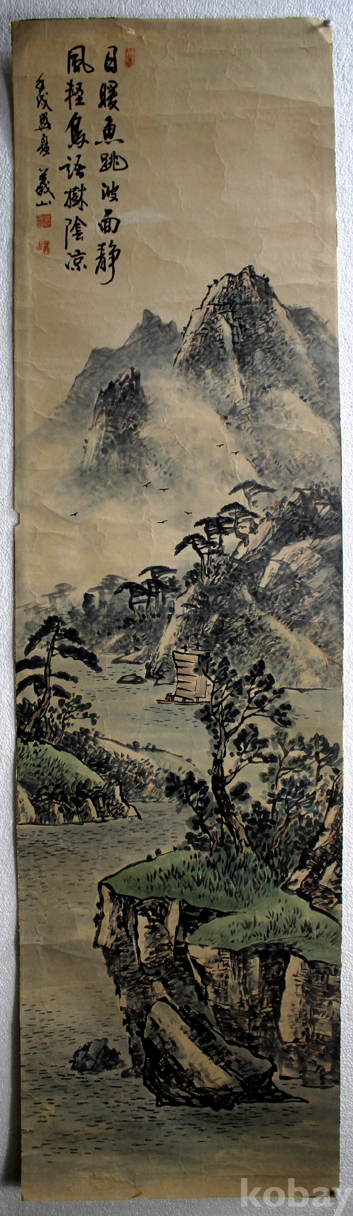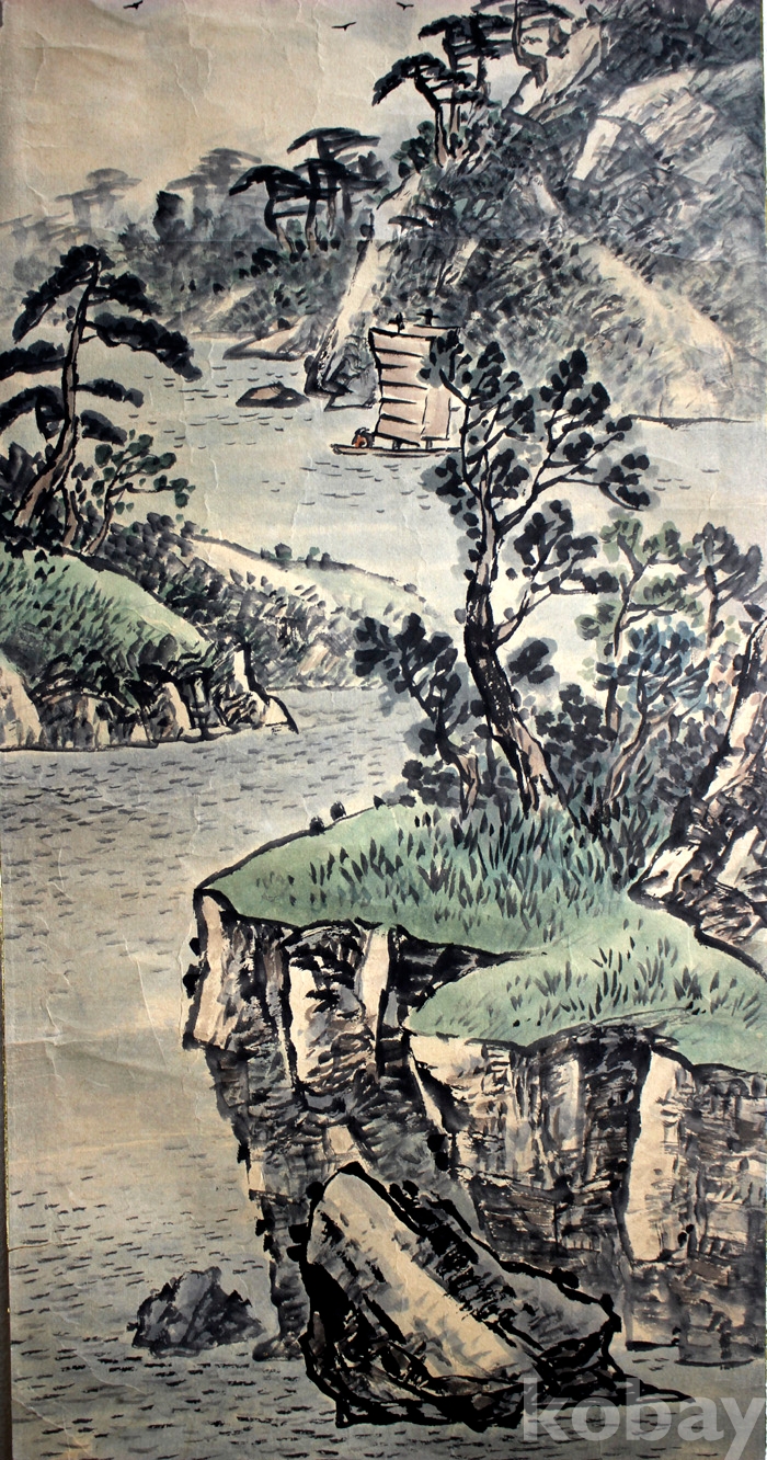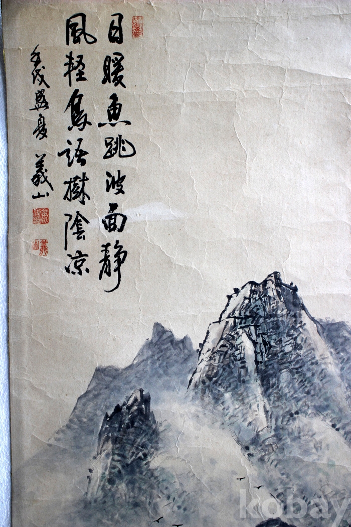 義山(의산) 김영준의 하경산수 - 운해와 돗단배가 있는 강가의 풍경