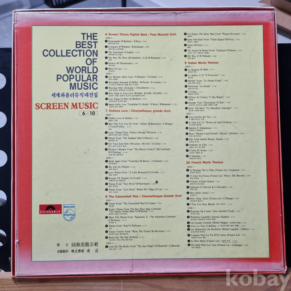 세계파퓰러뮤직대전집 4LP(6번 음반이 없습니다) 동화출판공사 박스반
