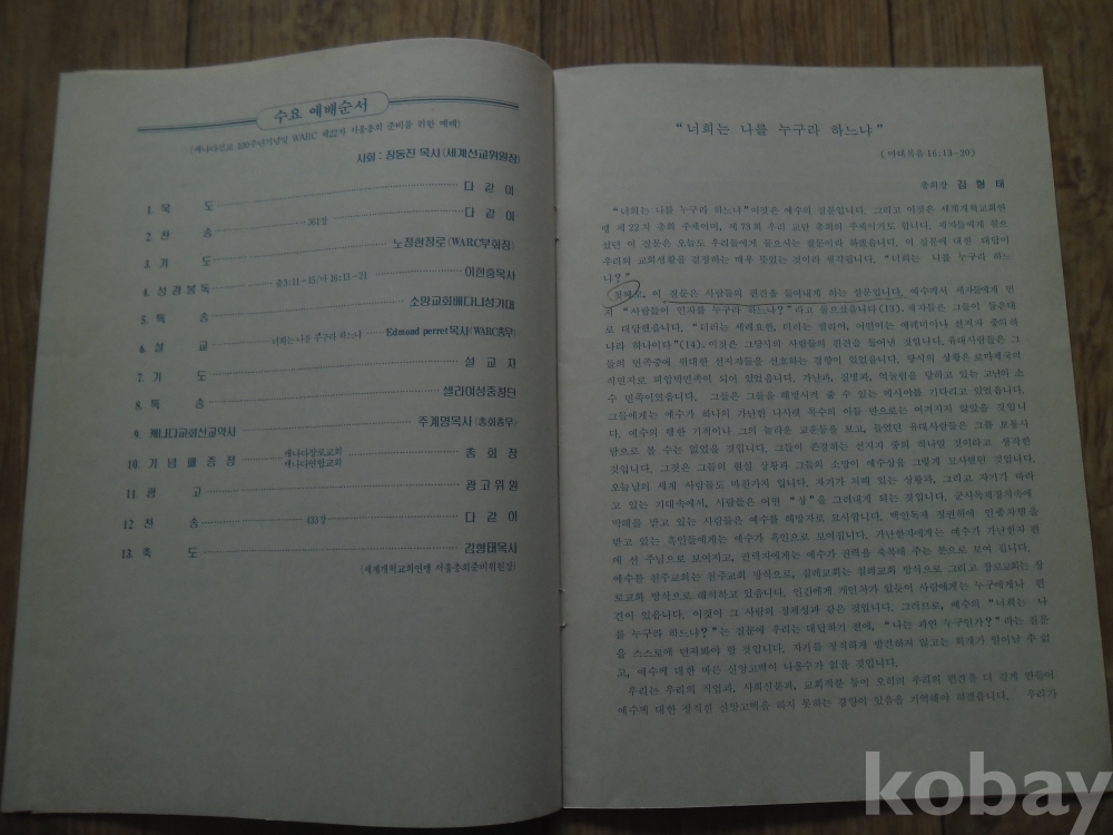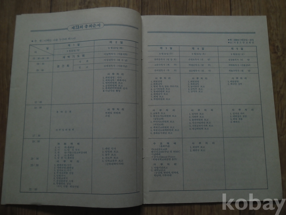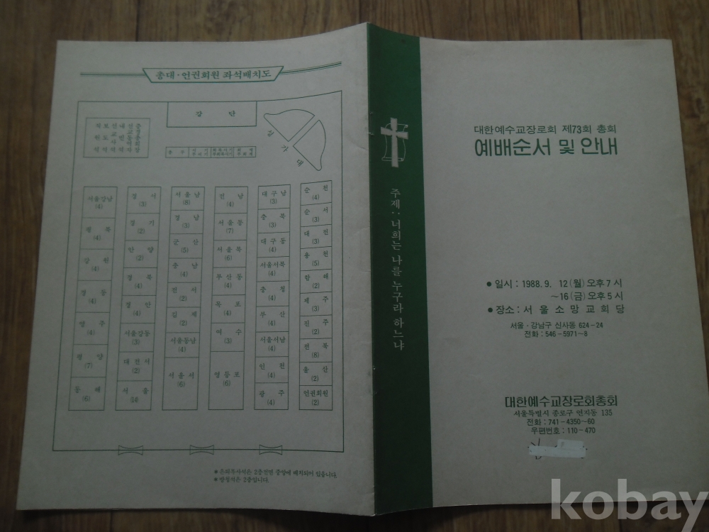 1988년 예장 제73회 총회 예배순서 및 안내