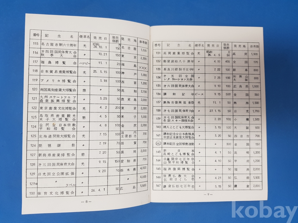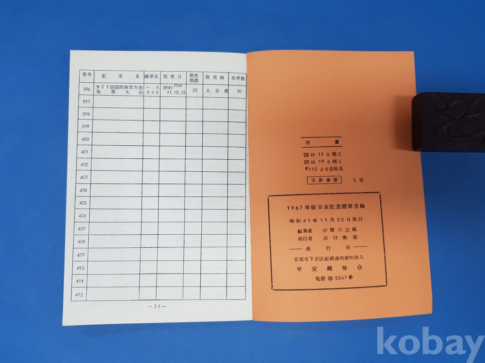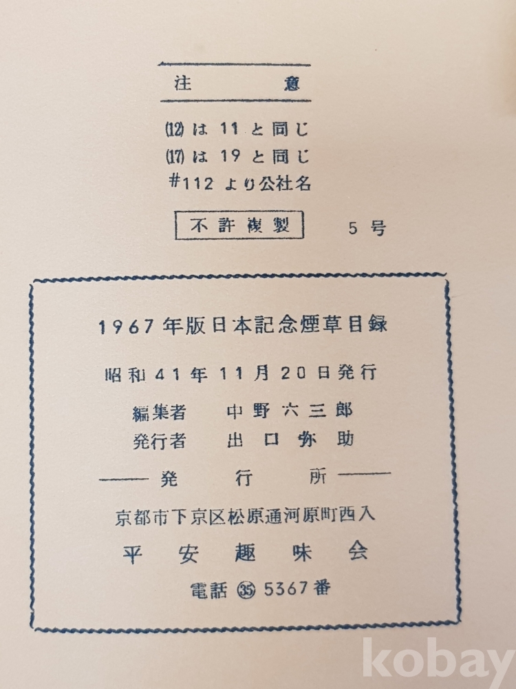 **** 일본 기념 담배 목록/1967년도 발행/헤이안 취미회/大正4年一昭和16年 昭和23年一昭和41年10月