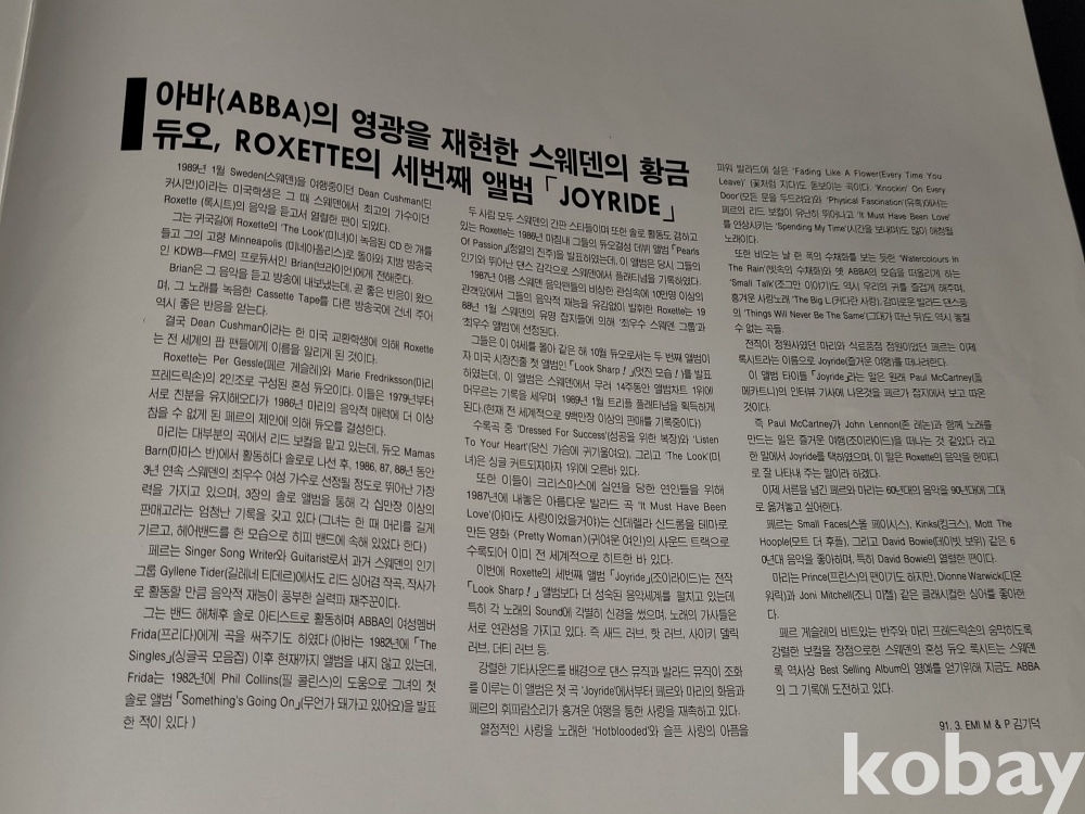 빈티지 LP 1979년 오아시스 제작 SMOKIE (스모키 GREATEST HITS), 1991년 ROXETTE JOYRIDE 등 2종 일괄입니다.