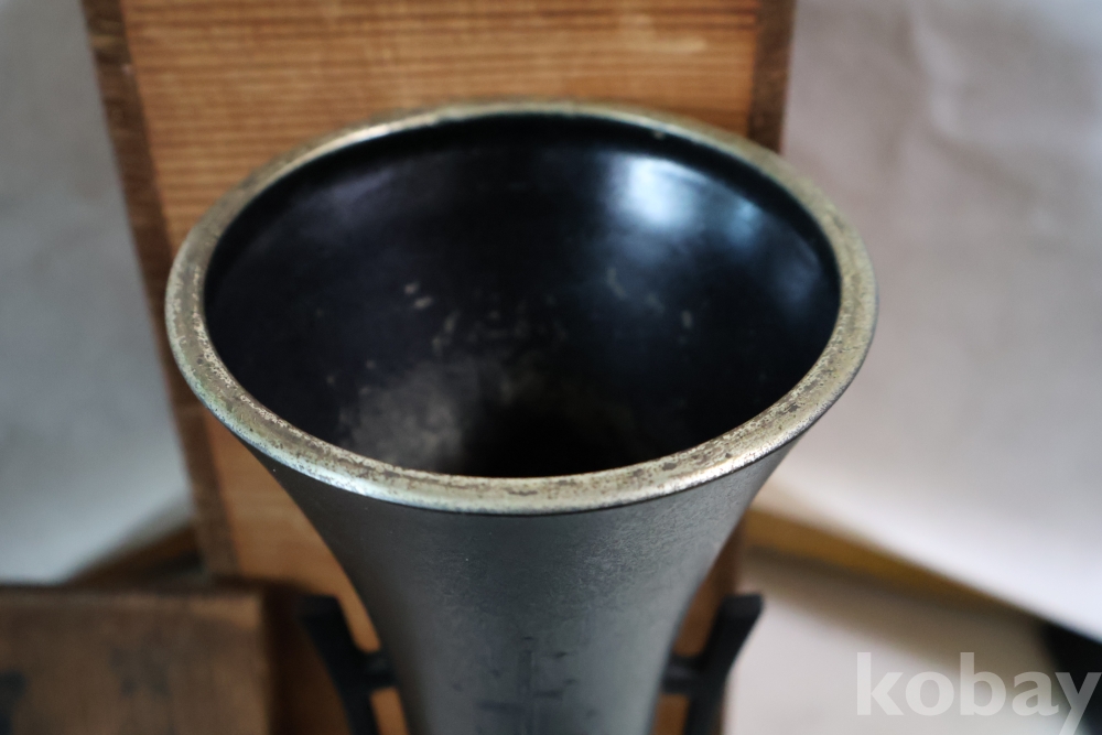 오리지날 상자에 보관해온 청동 화병 임니다 작가의 낙관이 보임니다 묘한 조각된 문양이 특이한 명품 임니다 상감처리 된 작가의 노력이 대단 함니다 사용감을 가진 당대의 명품 이며 상자는 세월의 흔적이 보임니다