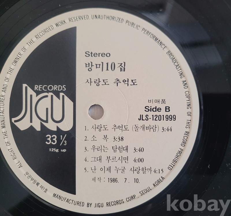 방미 10집 (사랑도 추억도 ) 비매품 LP -----------1점 입니다