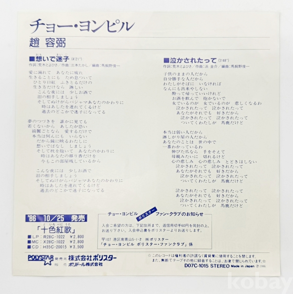 상품명 | 조용필 일본 싱글 [ 추억의 미아 / 울리더라도 ] 7인치 LP | ||