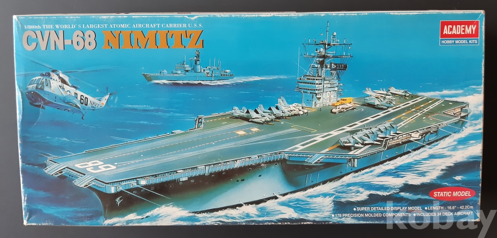1990년대 프라모델 [CVN-68 NIMITZ]. ACADEMY 제조,미사용이며 종이상자에 들어있음