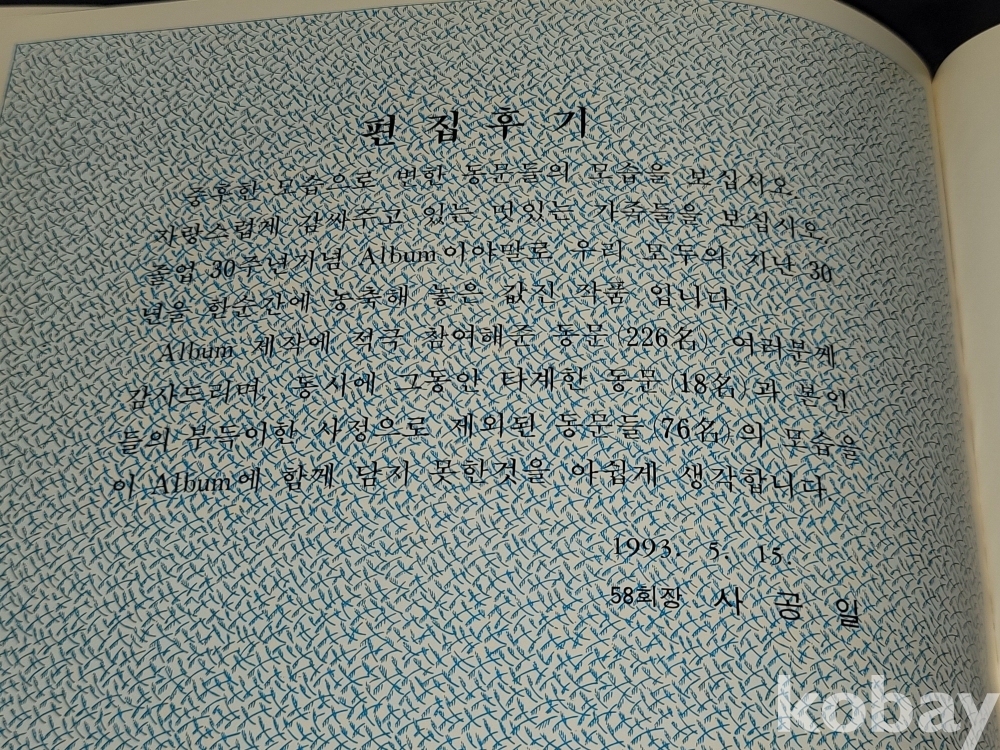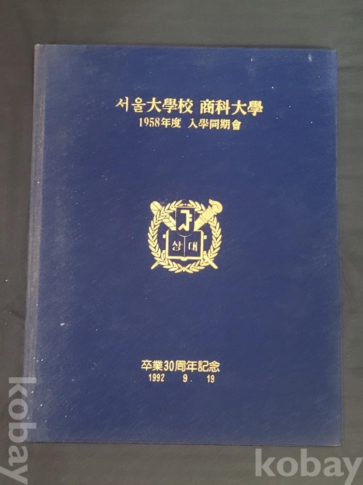 빈티지 1992년 제작 서울대학교 상과대학 1958년도 입학 동기회 졸업 30주년 기념사진 앨범 서적입니다.