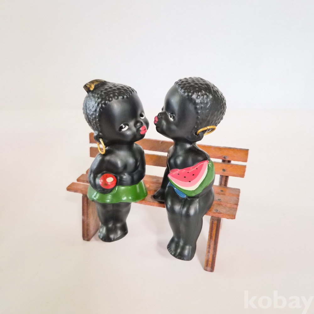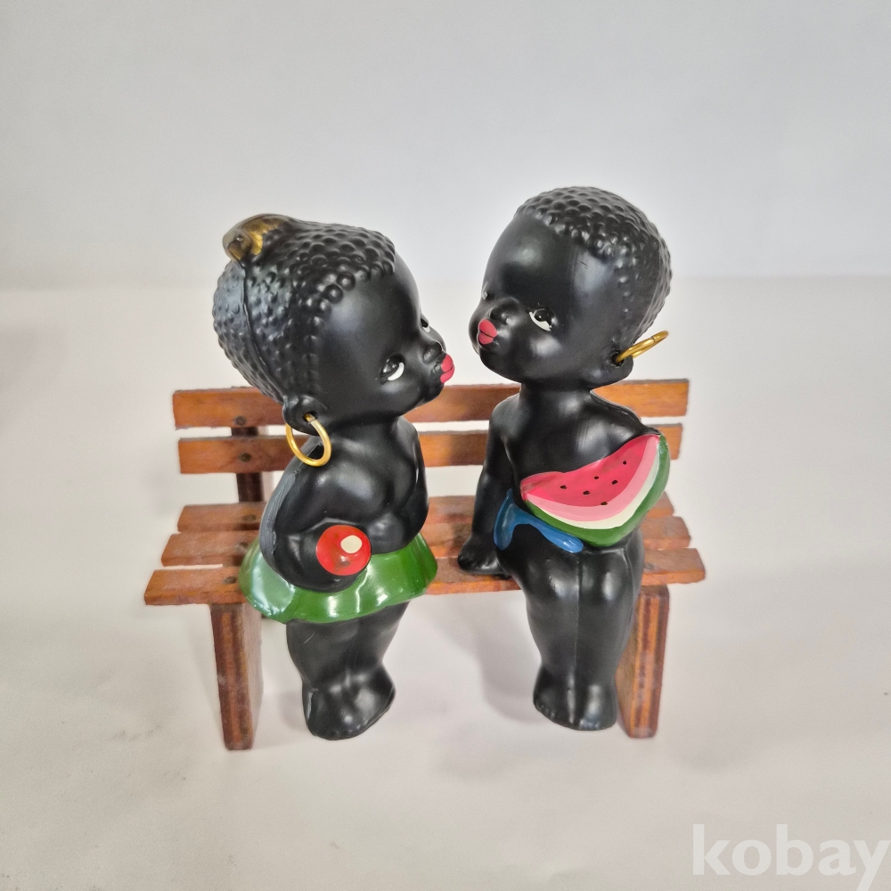 추억의 못난이 인형 흑인 어린이 한쌍 이며
