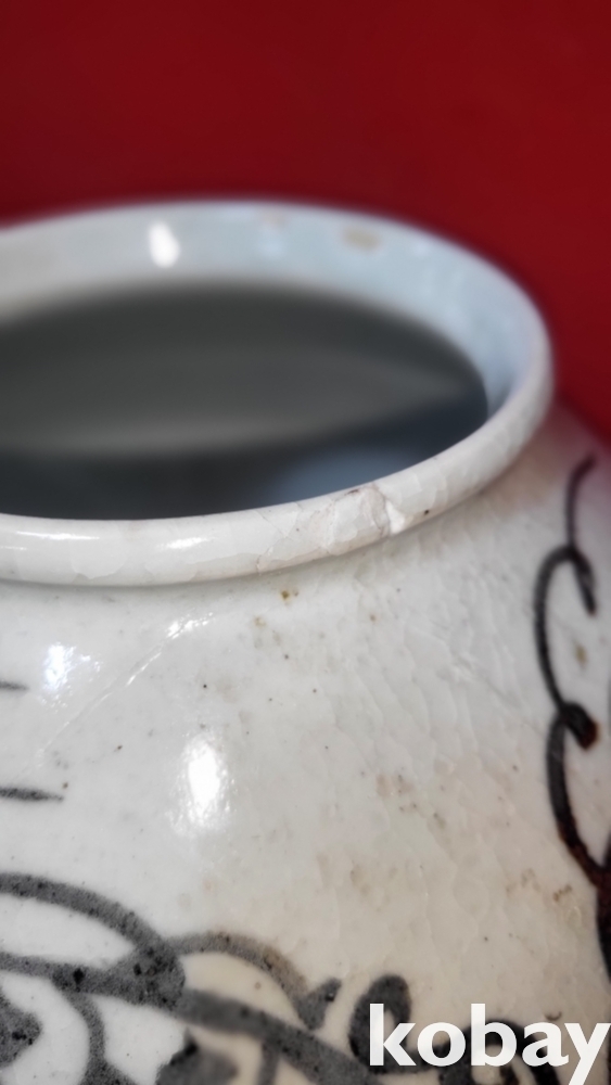 하단부에는 세로로 가마에서 발생한 흠결이 보임니다,