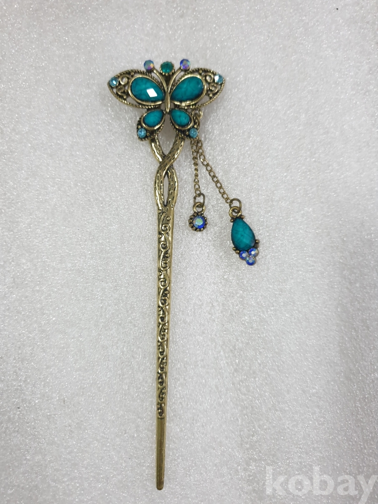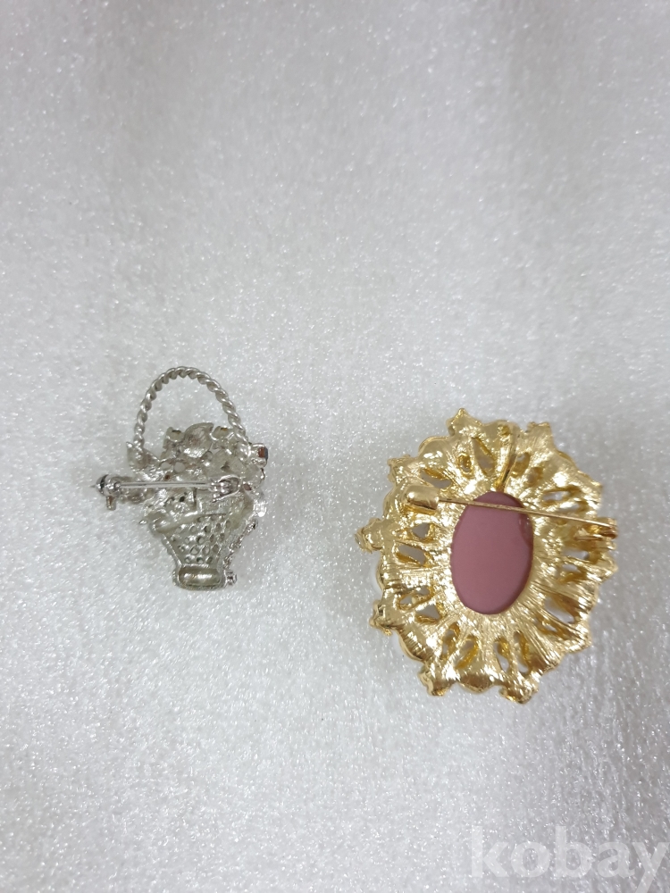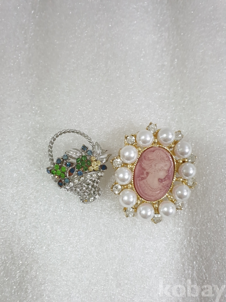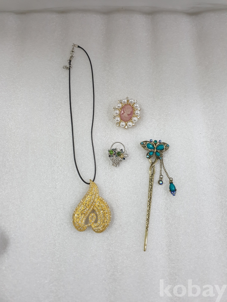 {천원경매} 1-1843 큐빅 브로치 2개+목걸이 1개+머리 꽂이 장식 1개