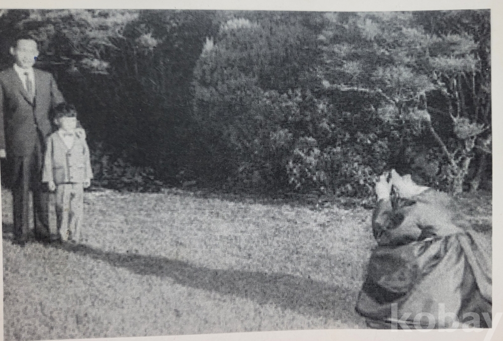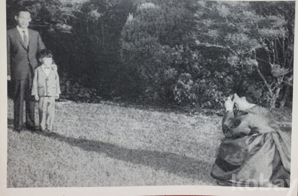 육영수 여사님께서 박정희 대통령과 지만군을 직접 촬영하는 명장면 흑백 사진입니다,