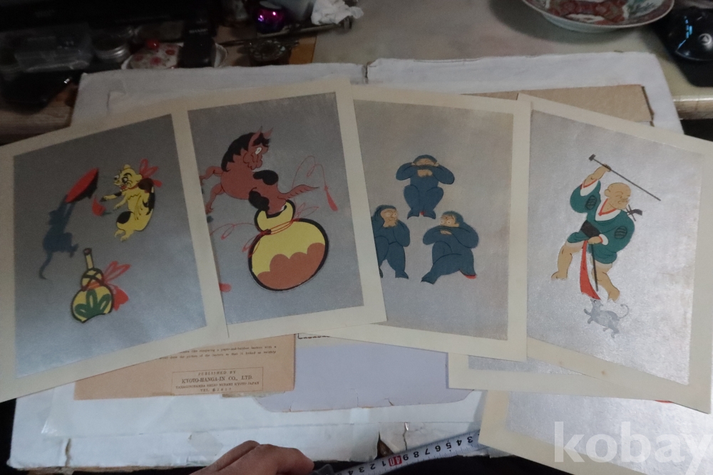 일본 민속 오츠에 목판화 6 세트 이며 오리지날 재킷?에 보관행온 판화 6 세트 이며 커버는 오래되어 찢어지고 테이프 등등 세월의 흔적이 보임니다 영어로 작품 해설을 가진 귀한 목판화 임니다 사진 참조 헤세요