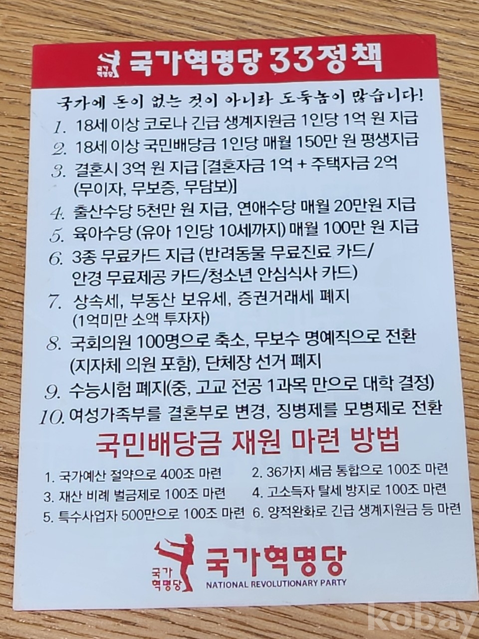 [선거자료] 허경영 관련 전단_ 국가혁명당 33 주요 정책