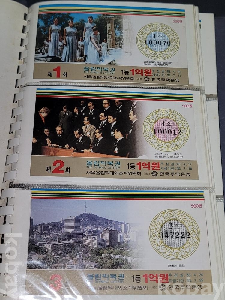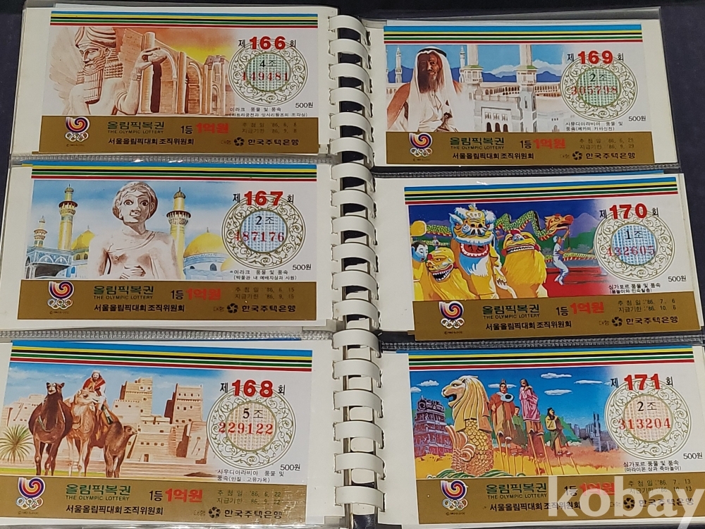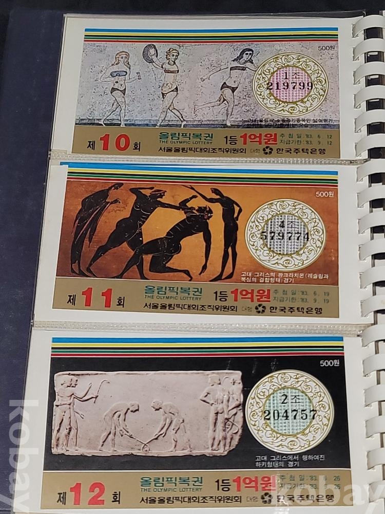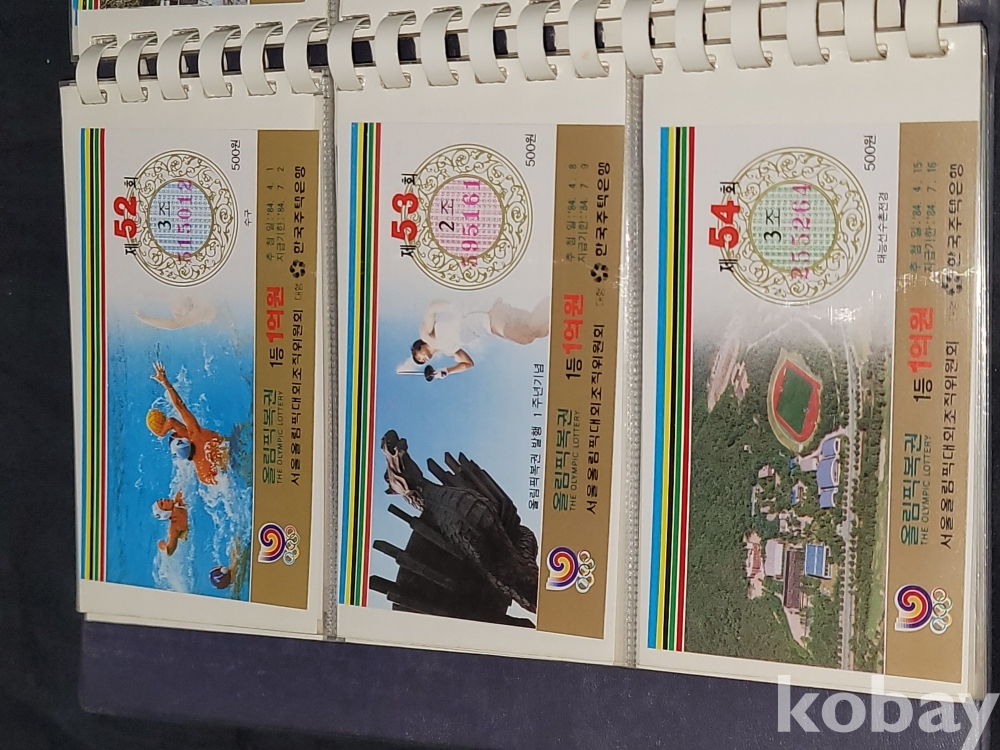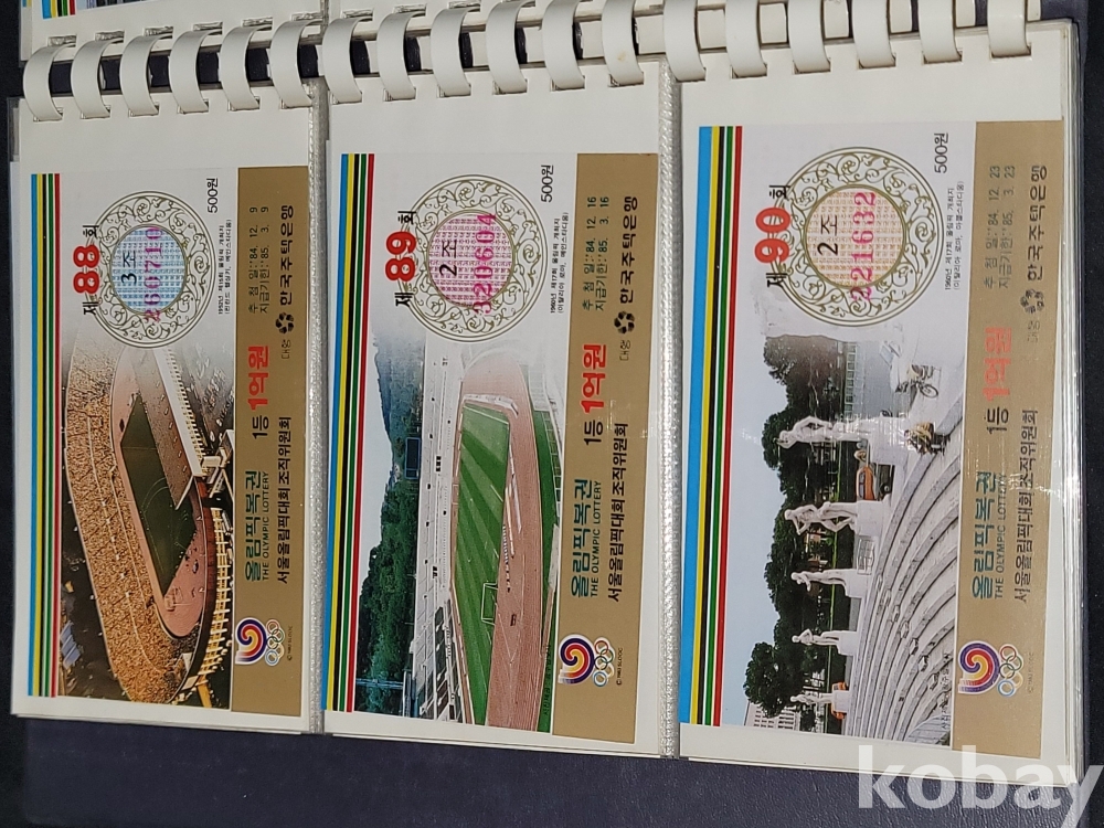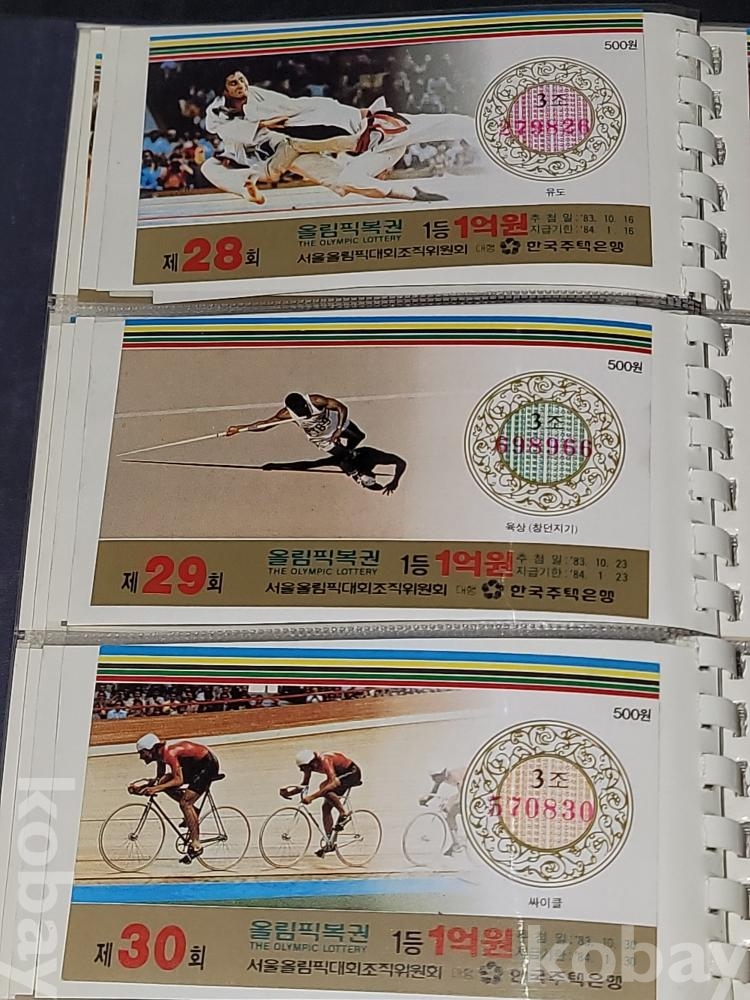 빈티지 세월 감이 느껴지는 1988년 한국 주택은행 1988 서울 올림픽 기념 올림픽복권 1회~180회가 담긴 올림픽복권 앨범입니다.