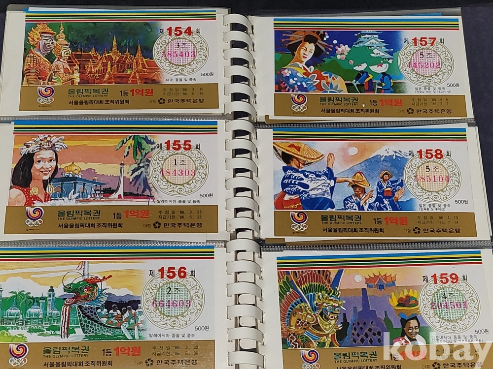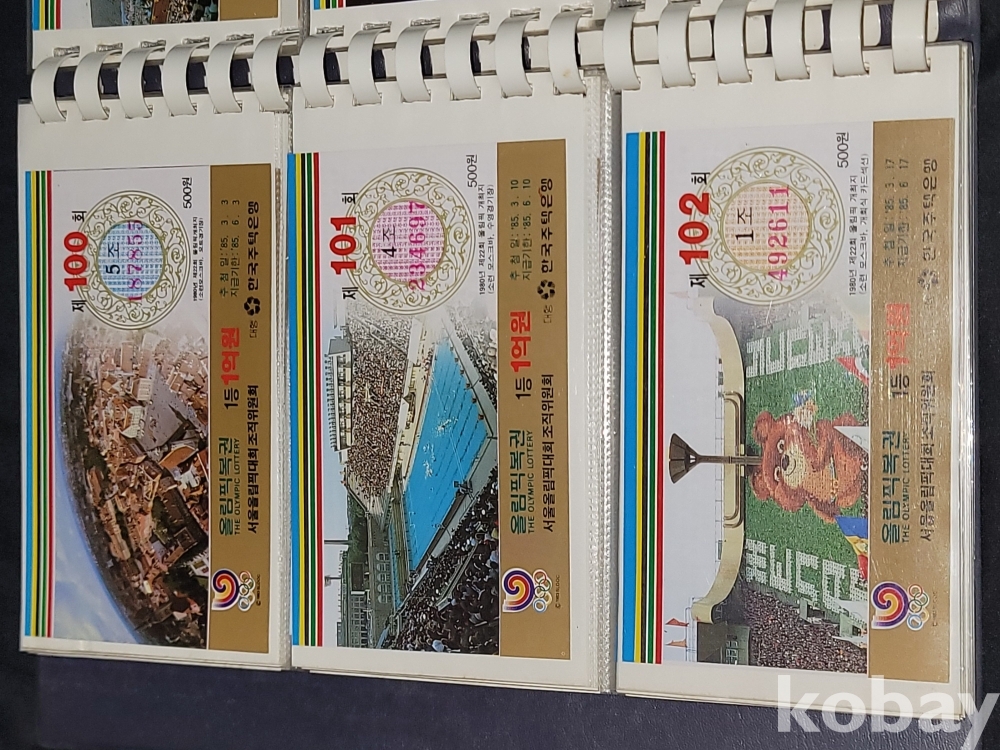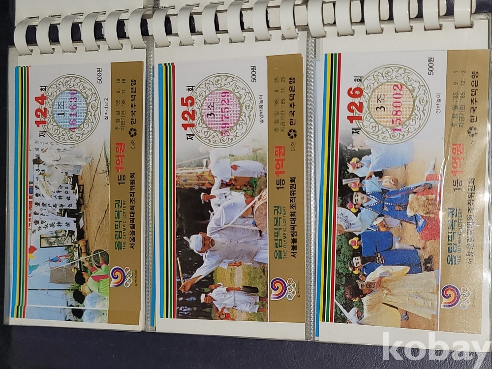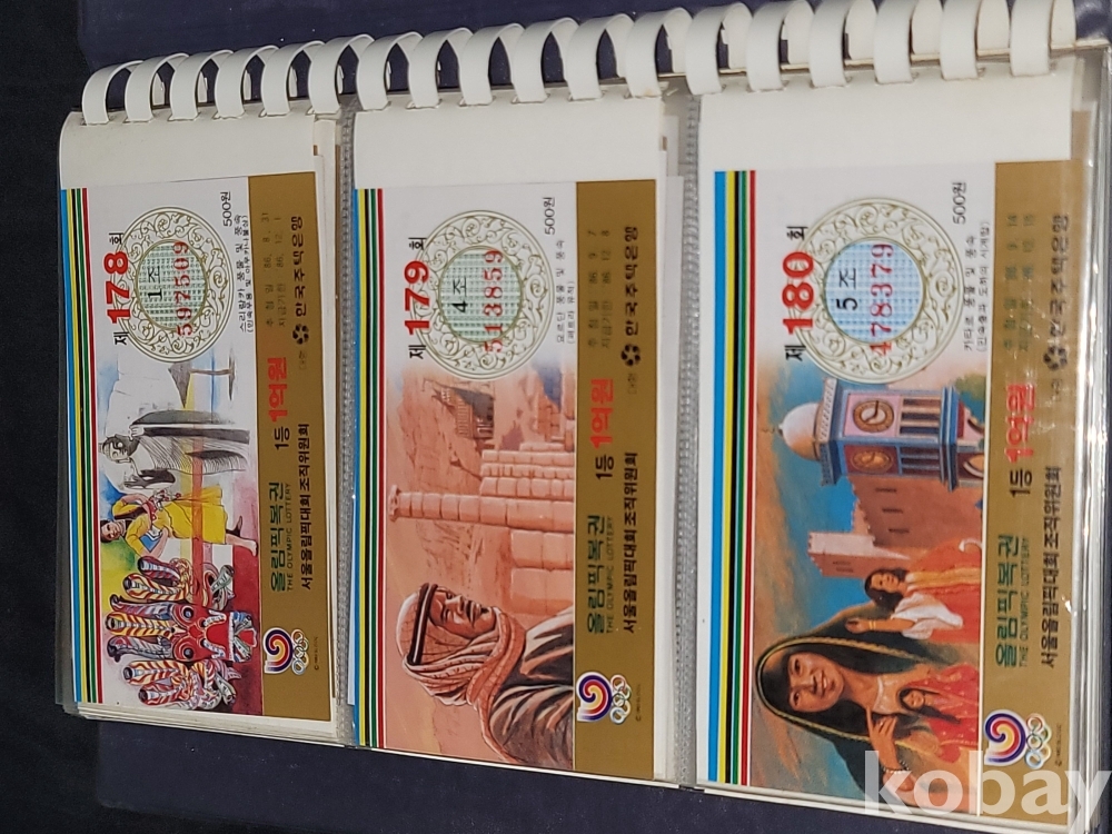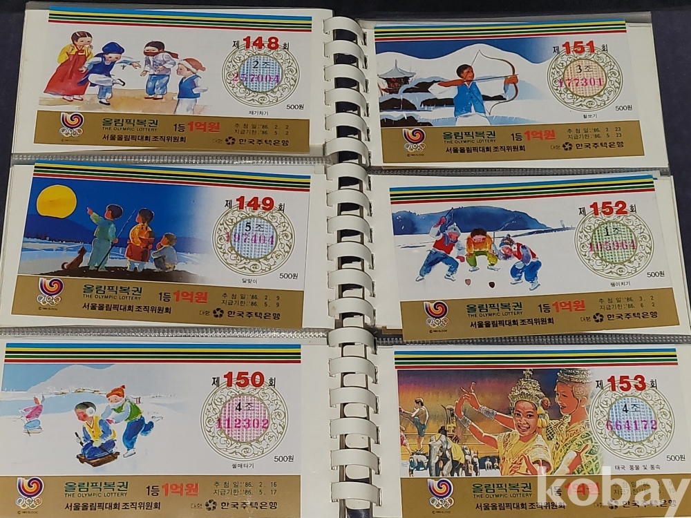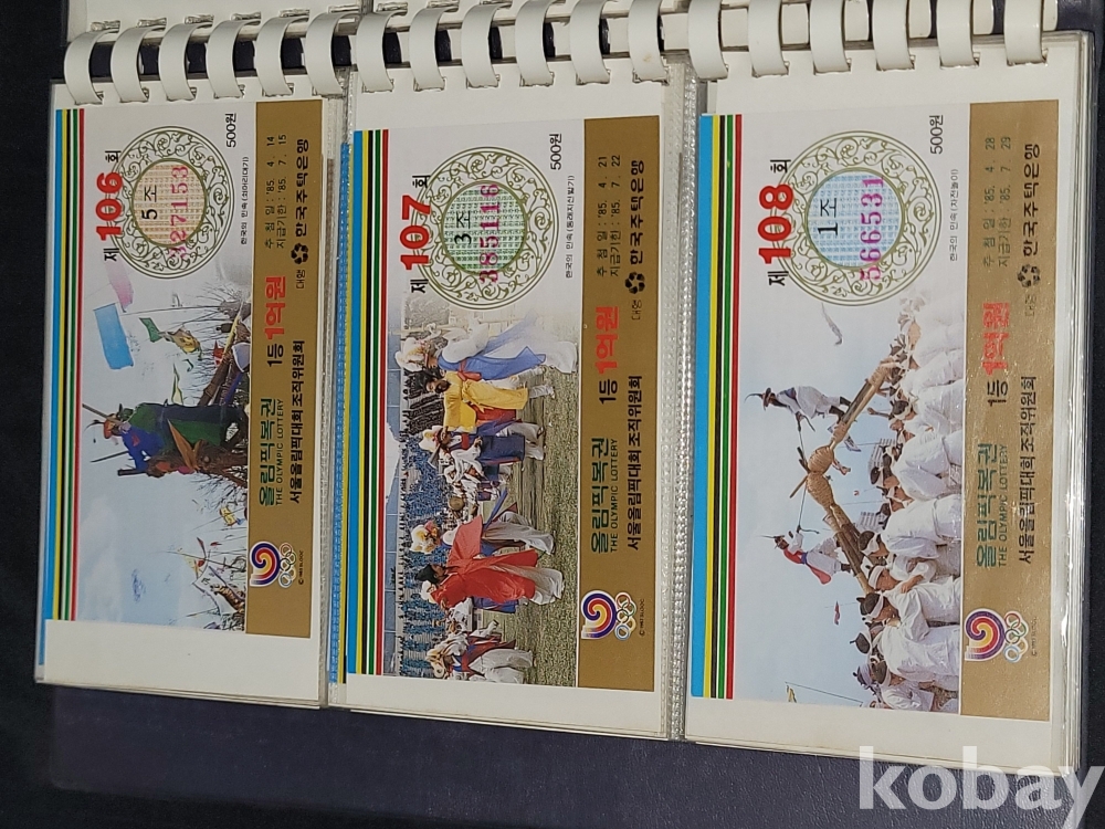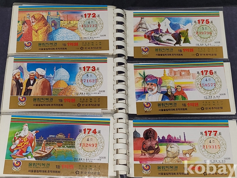 빈티지 세월 감이 느껴지는 1988년 한국 주택은행 1988 서울 올림픽 기념 올림픽복권 1회~180회가 담긴 올림픽복권 앨범입니다.