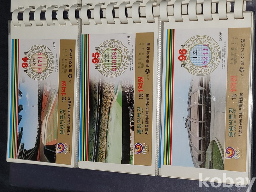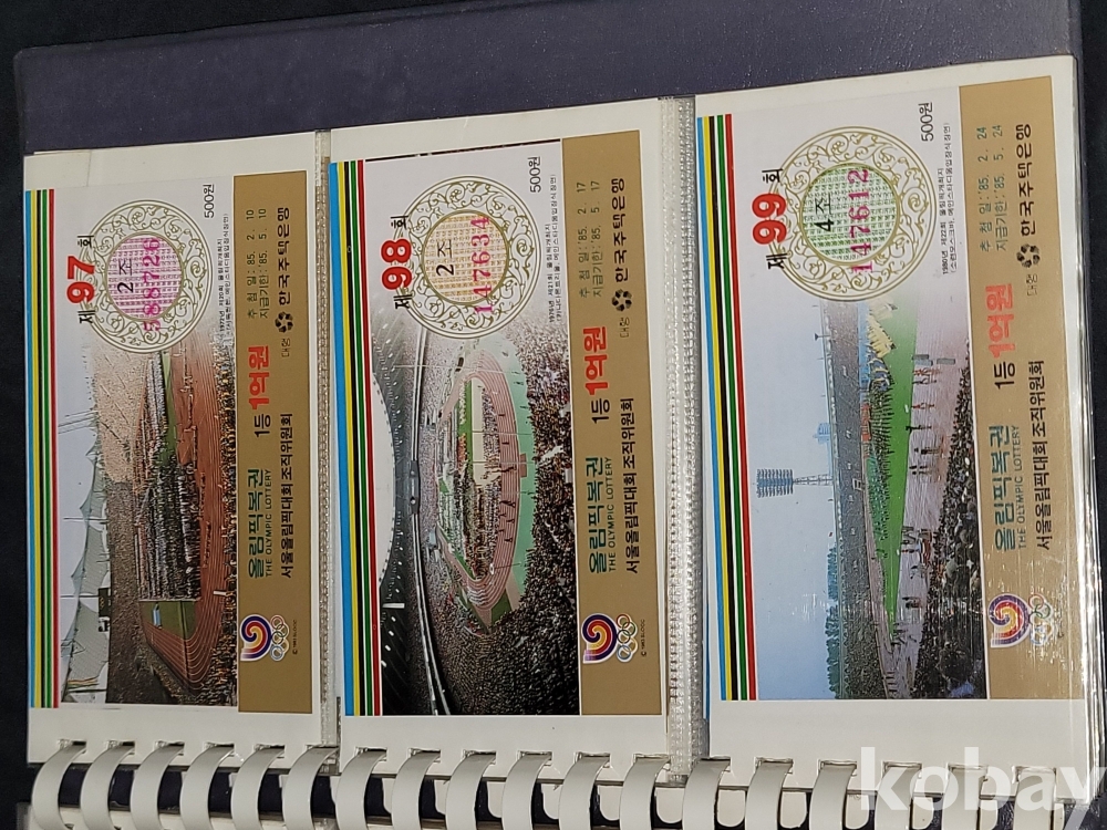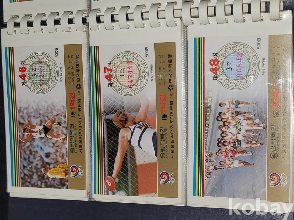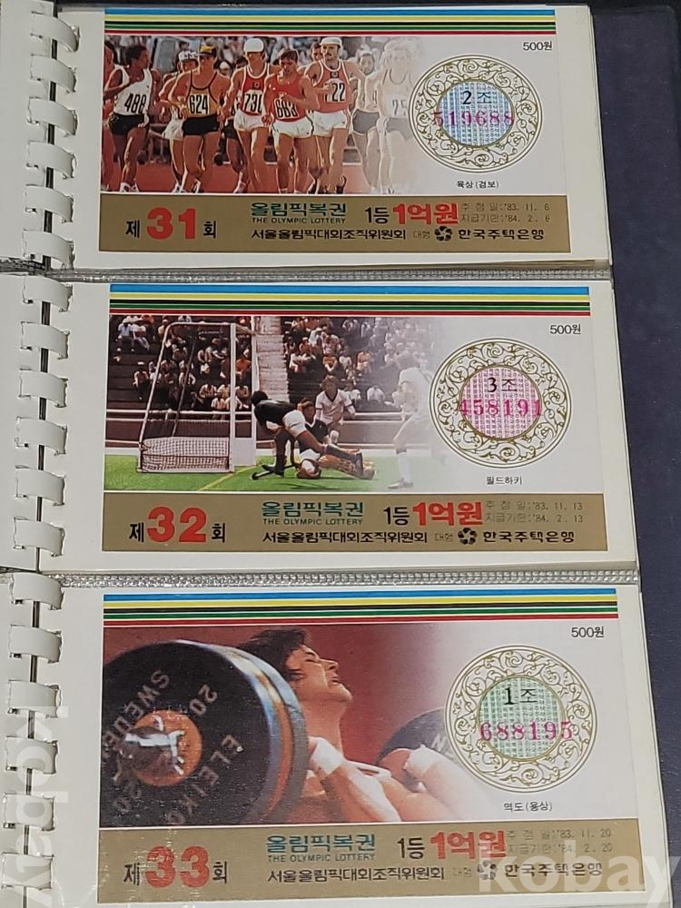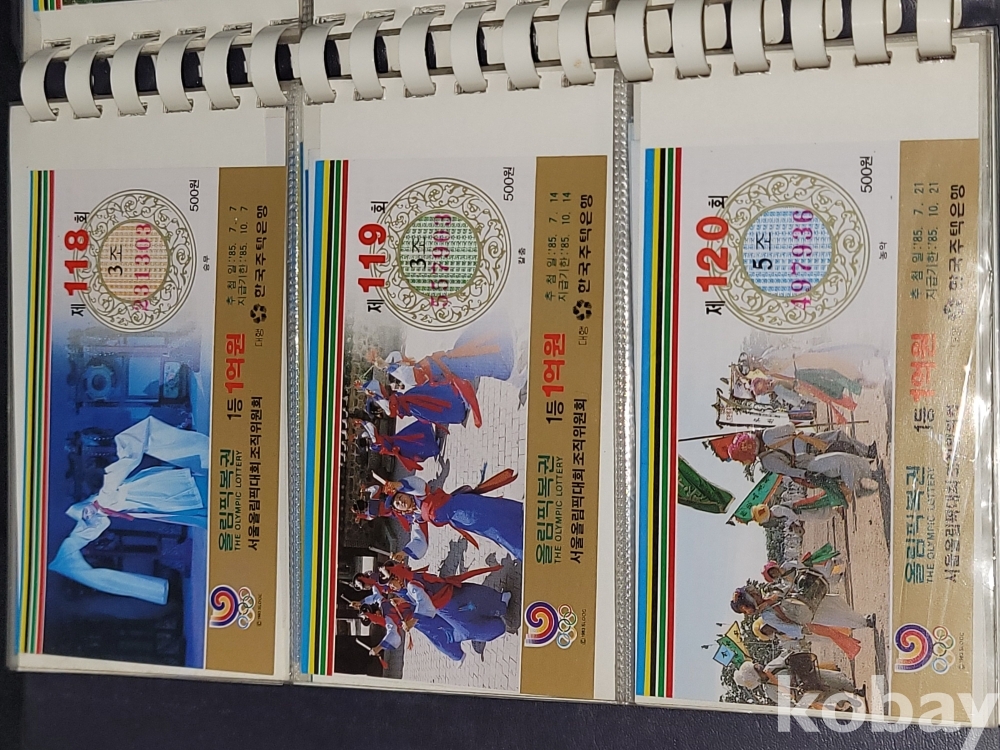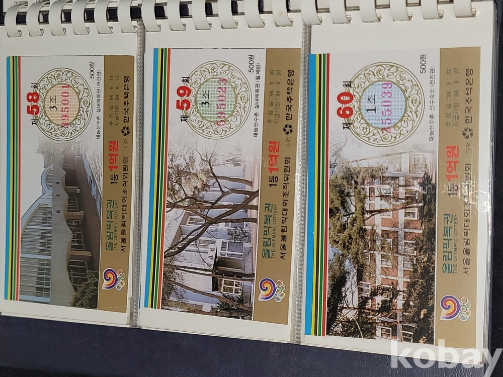 빈티지 세월 감이 느껴지는 1988년 한국 주택은행 1988 서울 올림픽 기념 올림픽복권 1회~180회가 담긴 올림픽복권 앨범입니다.