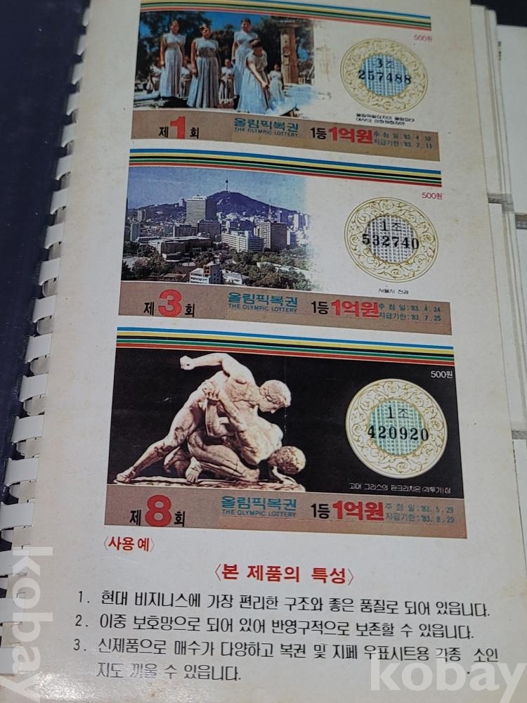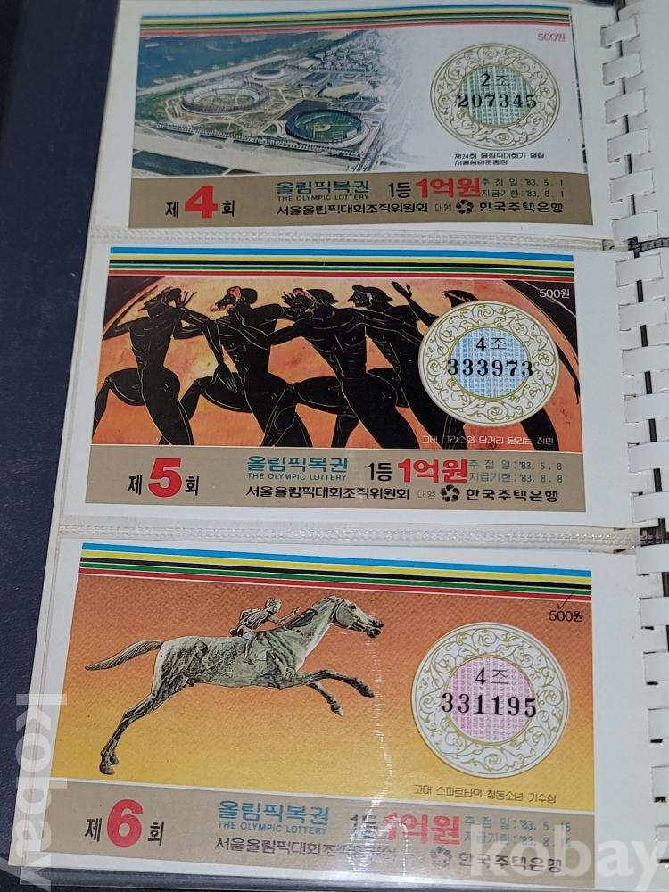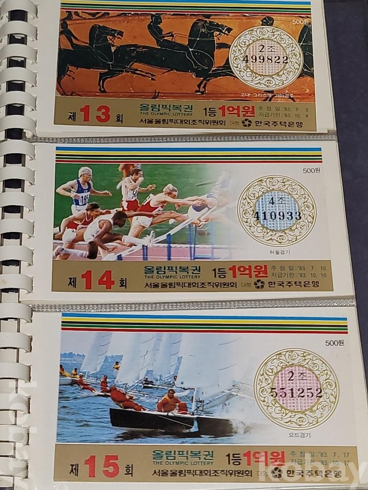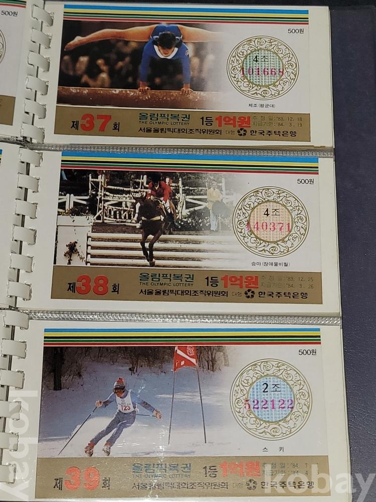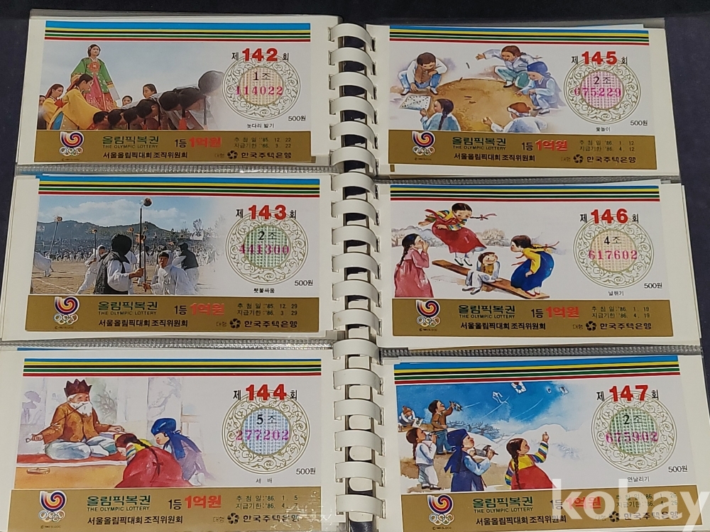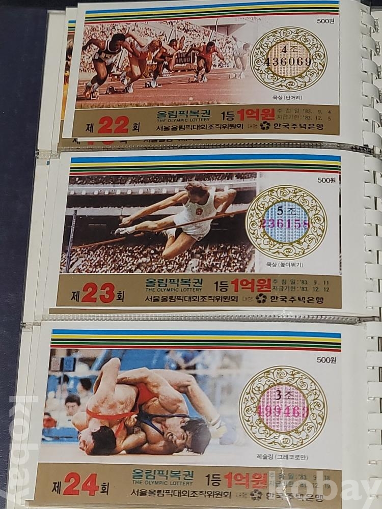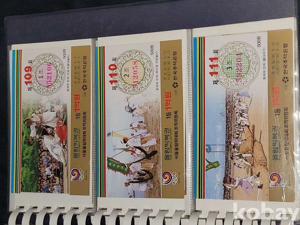 빈티지 세월 감이 느껴지는 1988년 한국 주택은행 1988 서울 올림픽 기념 올림픽복권 1회~180회가 담긴 올림픽복권 앨범입니다.