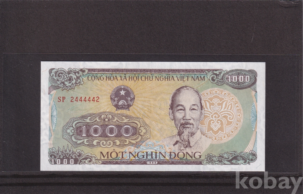 *베트남 특이번호 지폐 모음展* 1988년 1000동 SP 2444442 - 5봉 레이더 미사용 지폐