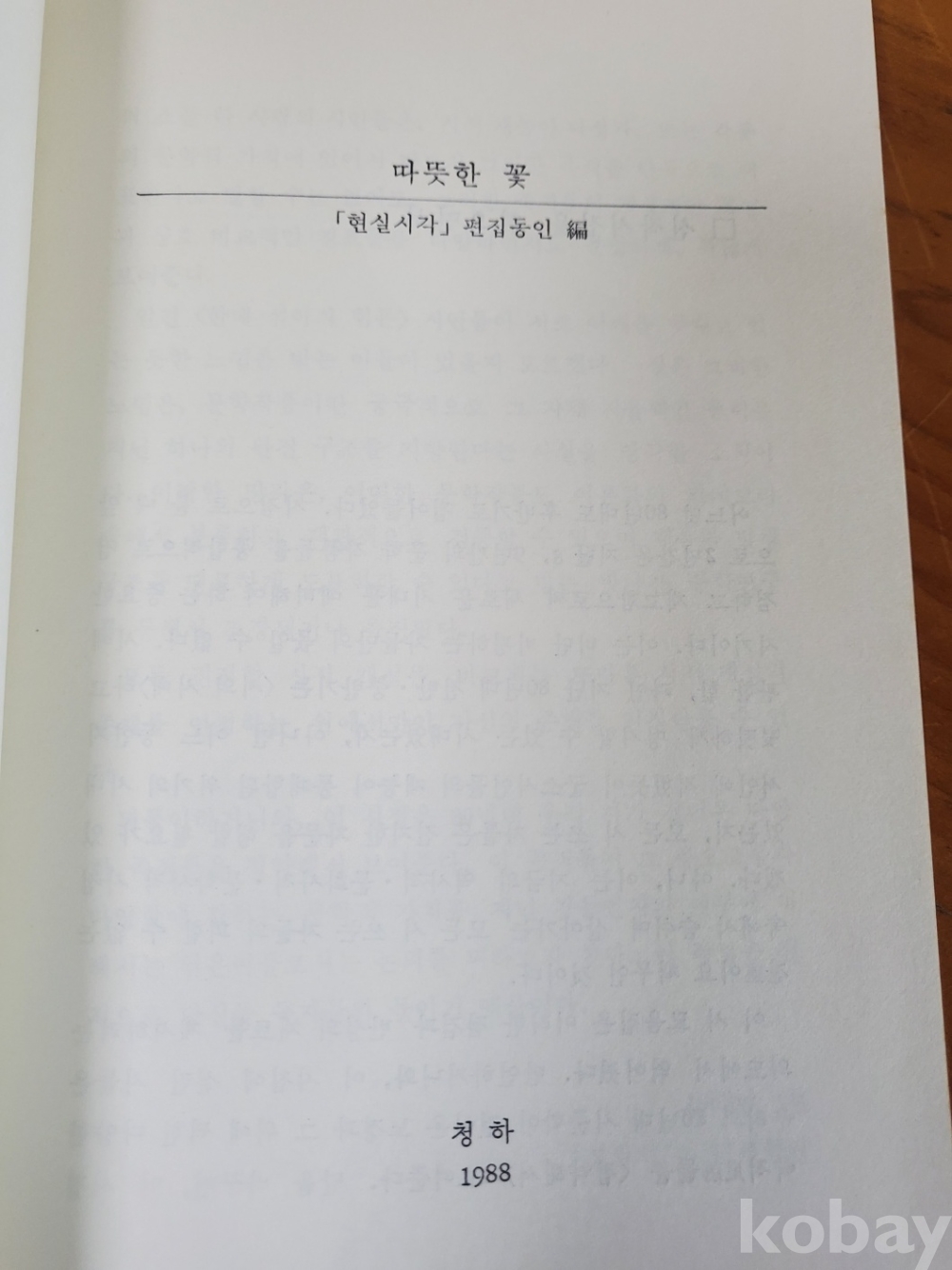 1. 따뜻한 꽃, 현실시각 편집 동인 편, 청하, 1988년, 177쪽, 상태 상, 사진 참조