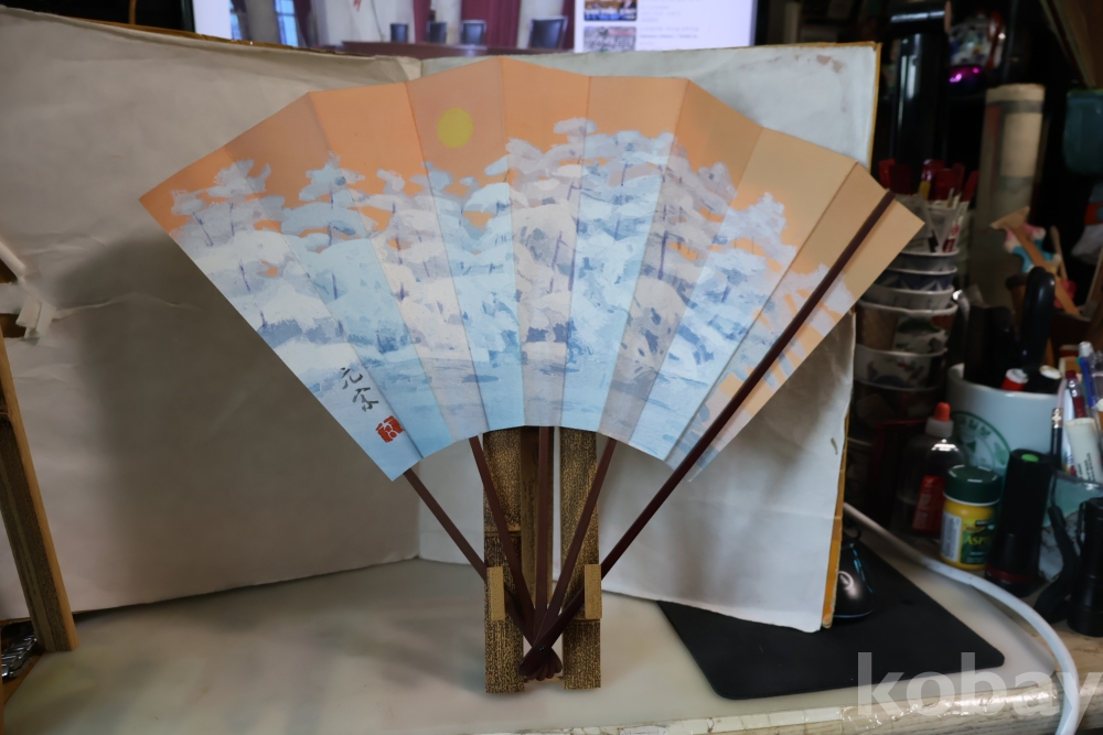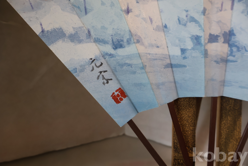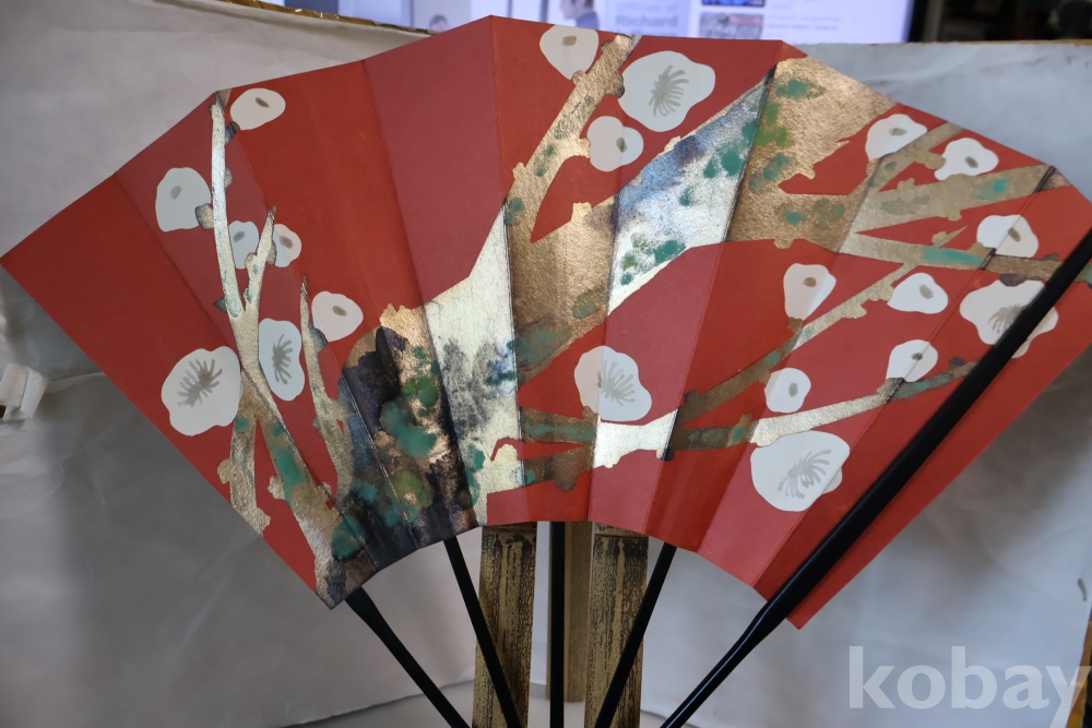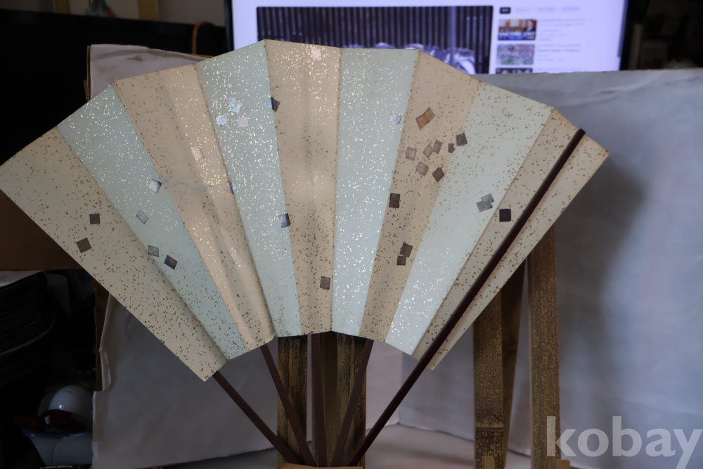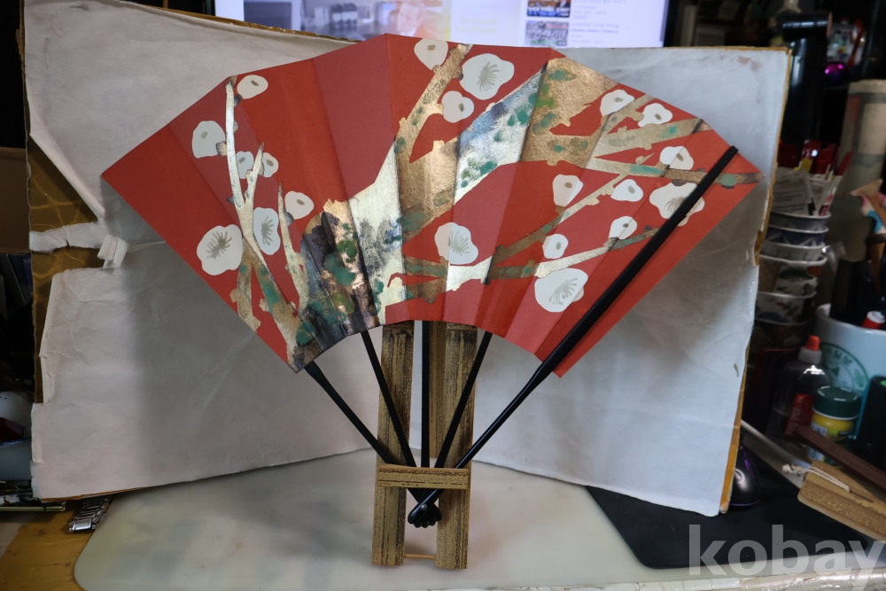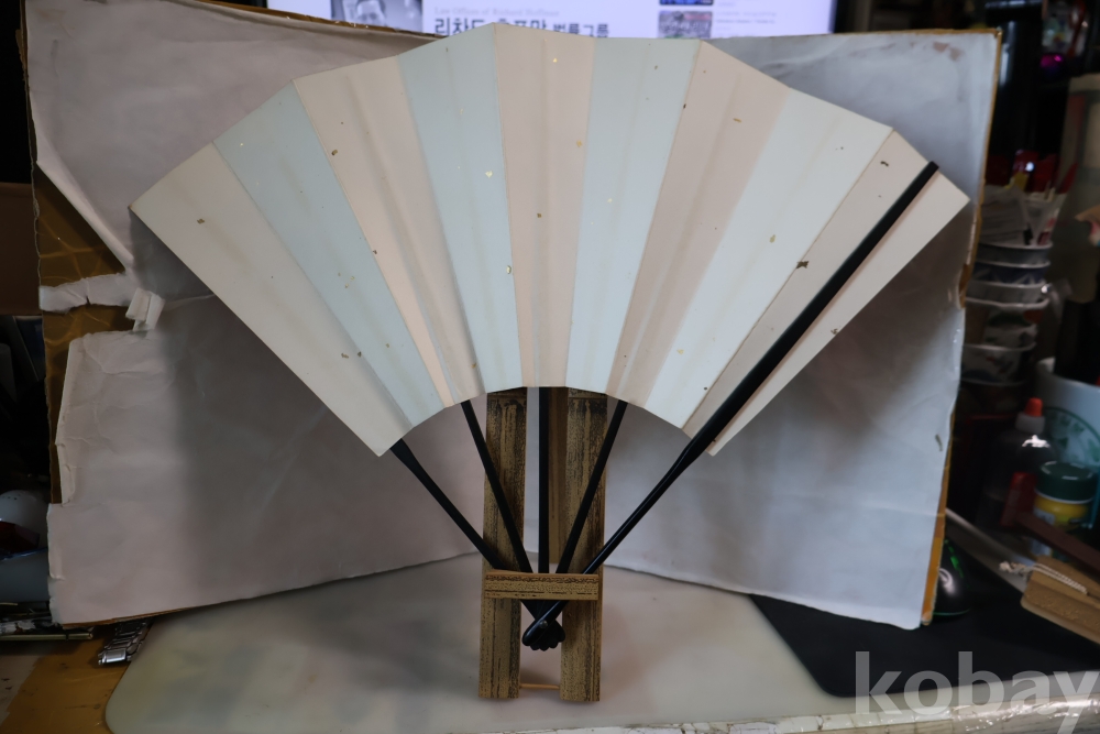 멋진 부채 와 걸이를 가진 명품 임니다 최고급 부채 임니다 종이상자는 세월의 흔적이 보임니다