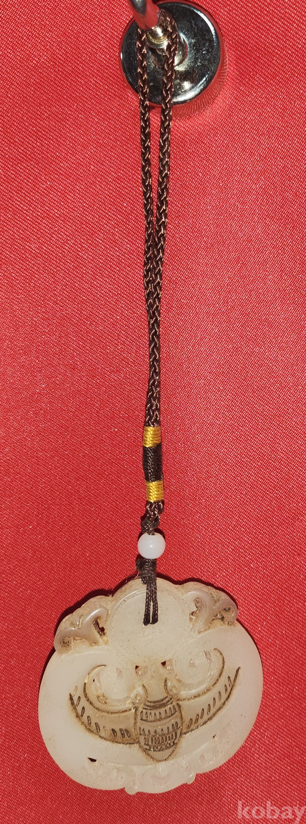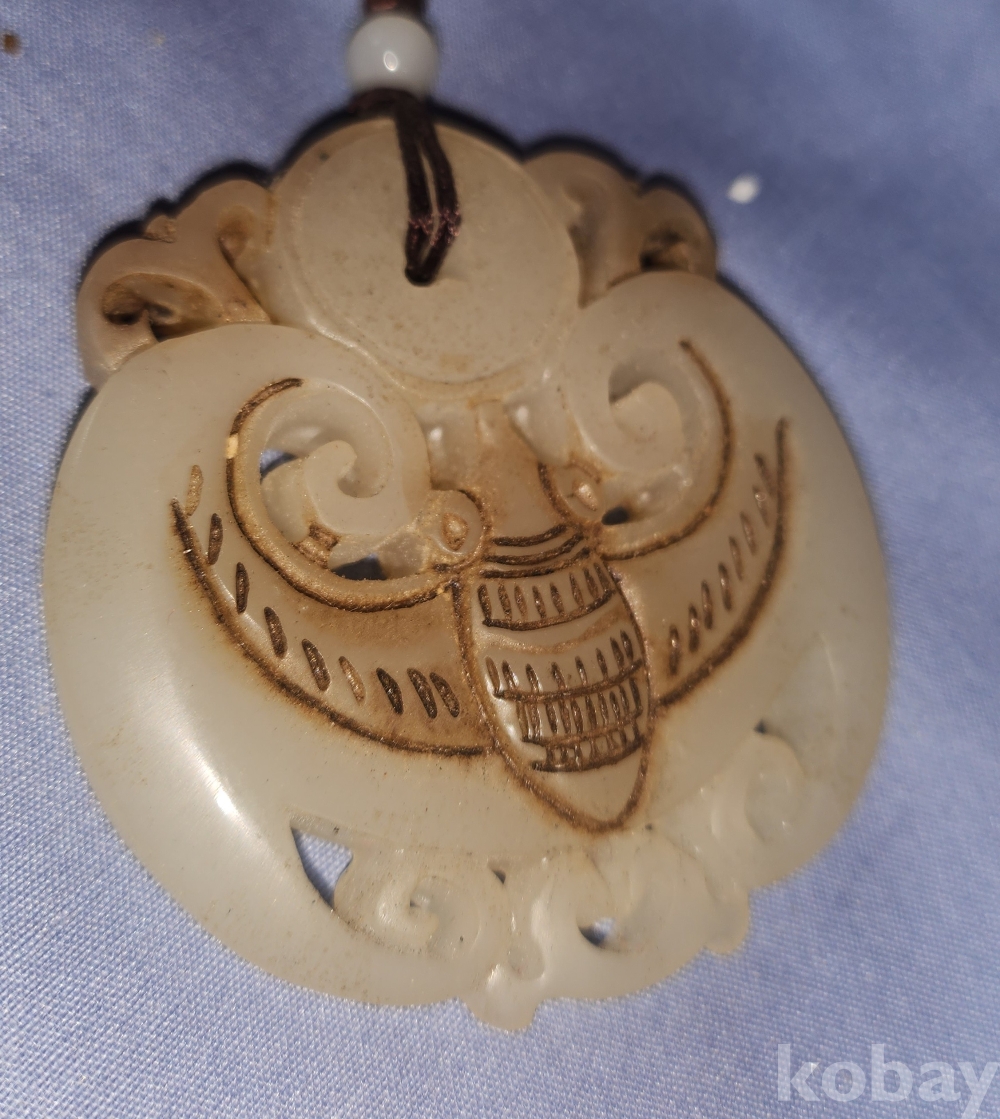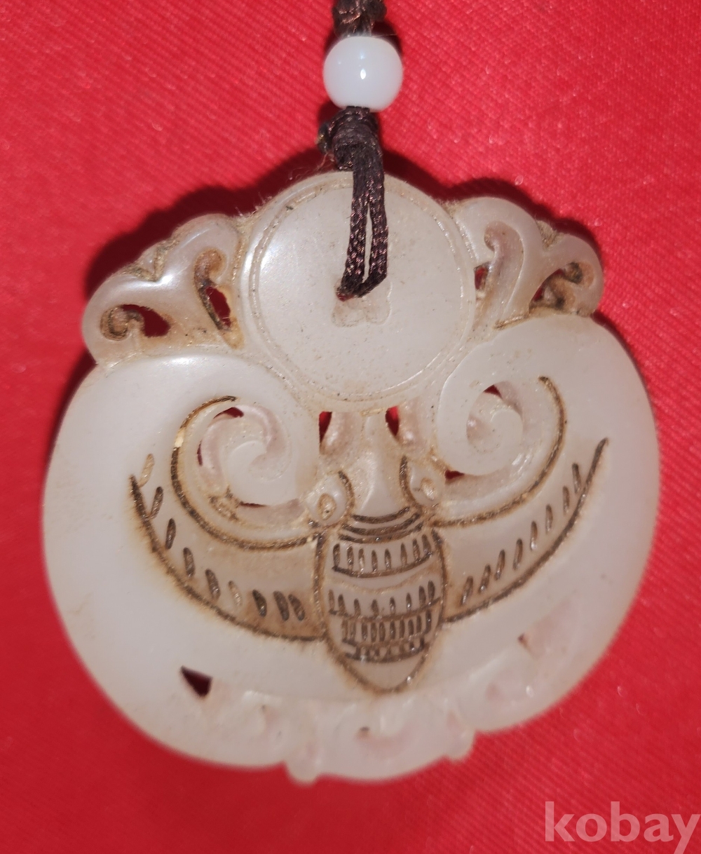 백옥(白玉)으로 완성된 박쥐문양 팬던트입니다,