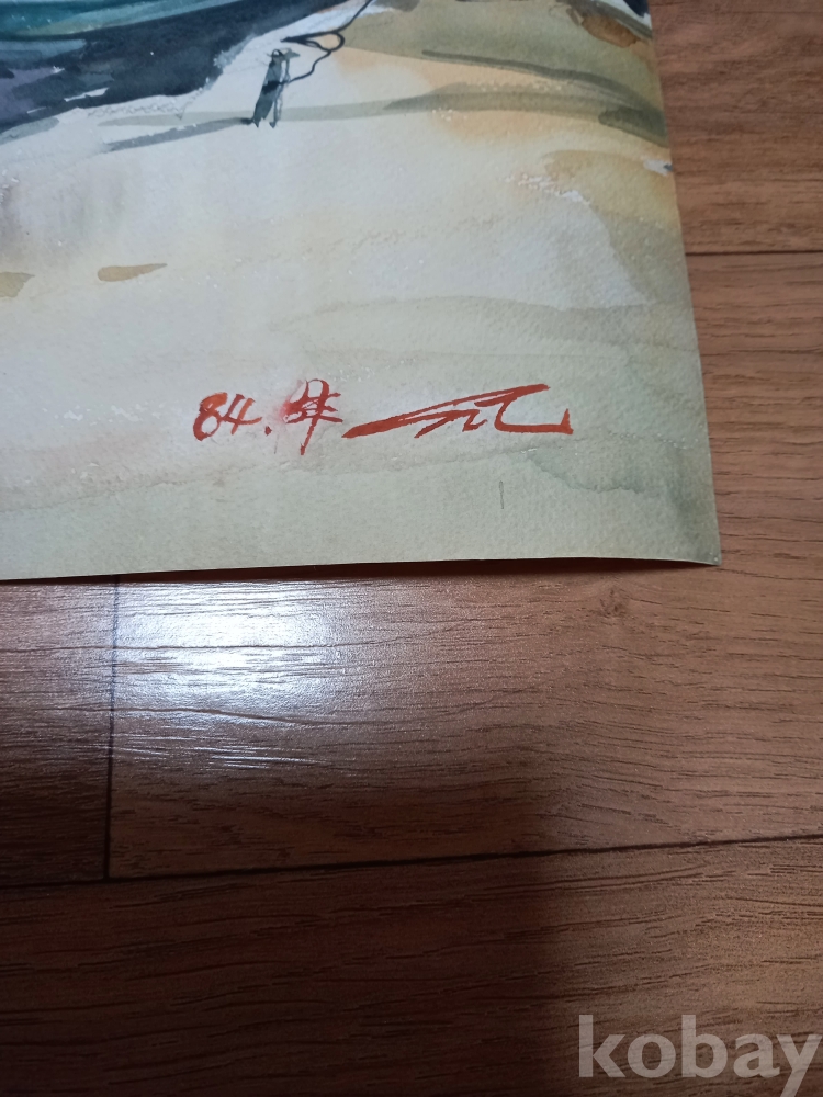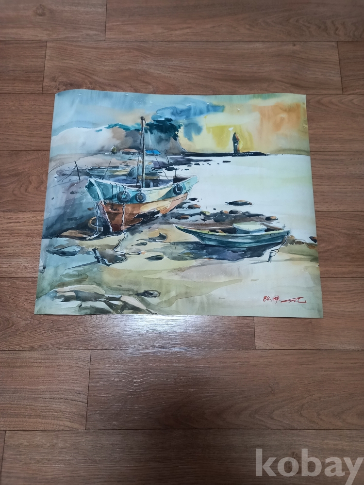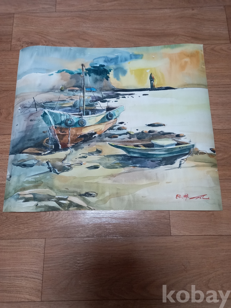 수채화 바다와 배 그림 1점 입니다