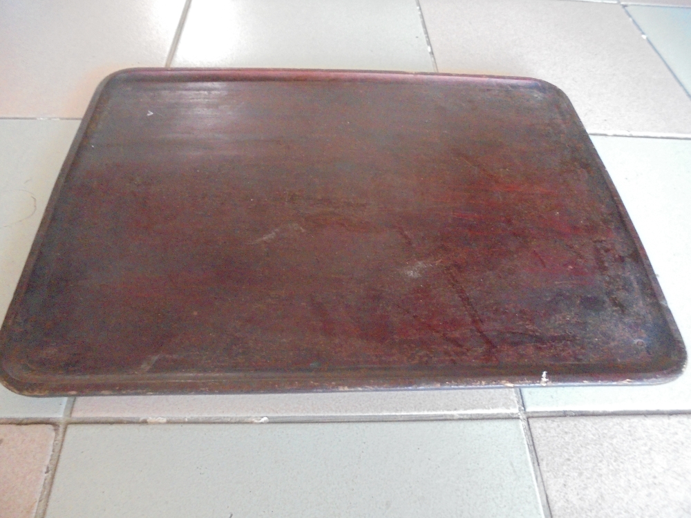 오래된 손님4각상으로 다리가부서져없는 나무가 무거운 괴목으로보이는 튼데안보이는 크고무고운 다라없는 사각 상판반