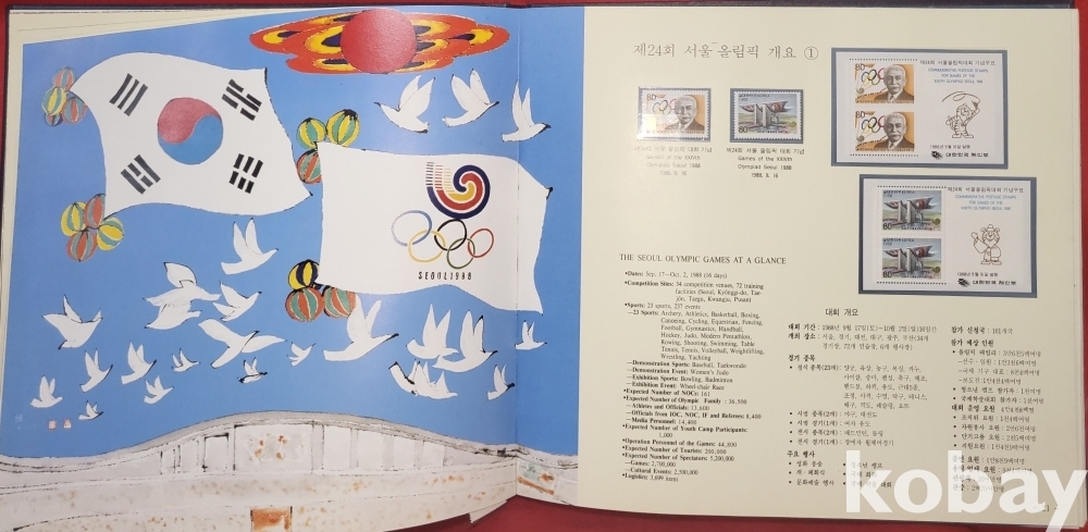 1988년 체신부 발행 제24회 서울 올림픽 대회 우표 앨범입니다,