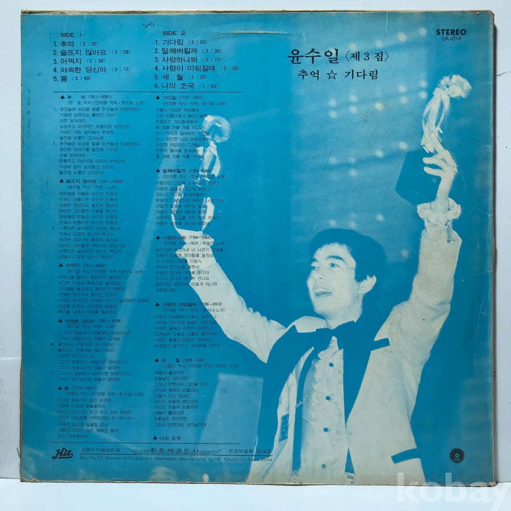 LP 20,200-1 윤수일 3집 - 추억/ 기다림 79 히트 자켓 EX 알판 EX