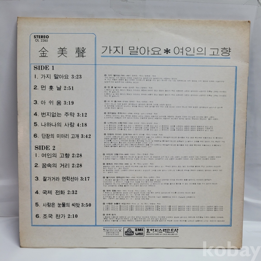 | 자켓상태 | EX : 약간의 마모, 모서리 찢김 존재 | 음반상태 | EX : 재생에 영향 없는 가벼운 기스 존재 | 발매정보 | 초반 | 가사지여부 | 무 |
