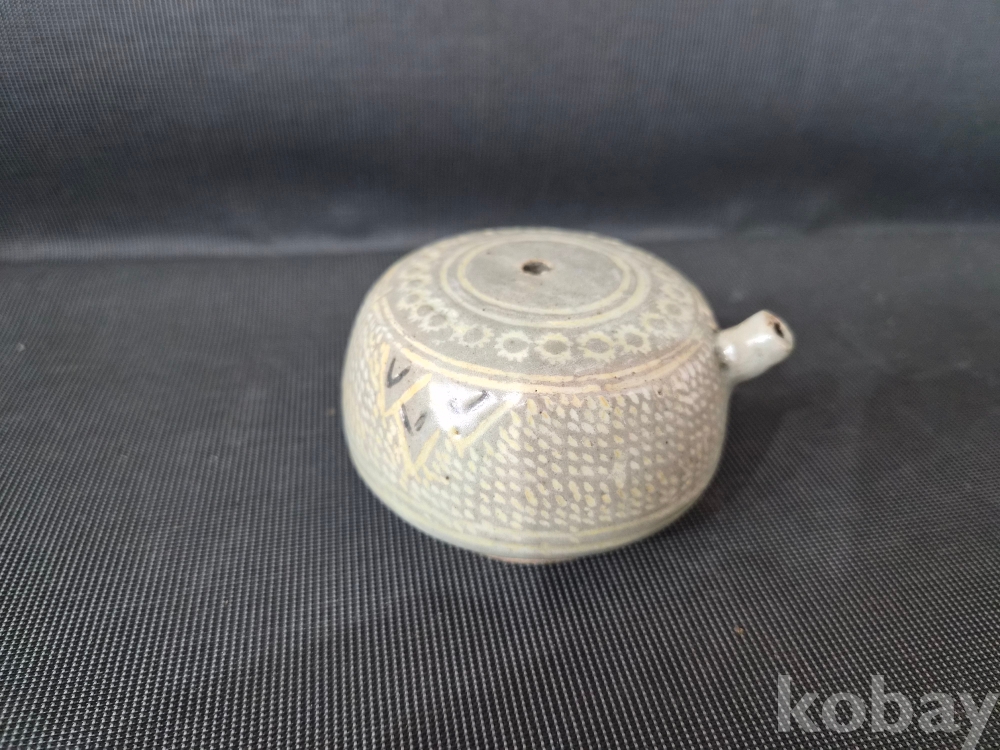 분청 흑백상감 우점문에 소국이 잘 시문되어있는 아주귀한 연적입니다.저의개인적인소견으로는.진품으로 보이나 아직감정을 받지않은 상태이며 진위여부를 알수없네요? 사진참조하시고 안목으로 신중한 응찰 부탁드리며 진위여부로 반품은 정중히 사양하겠습니다 좋은감상하세요