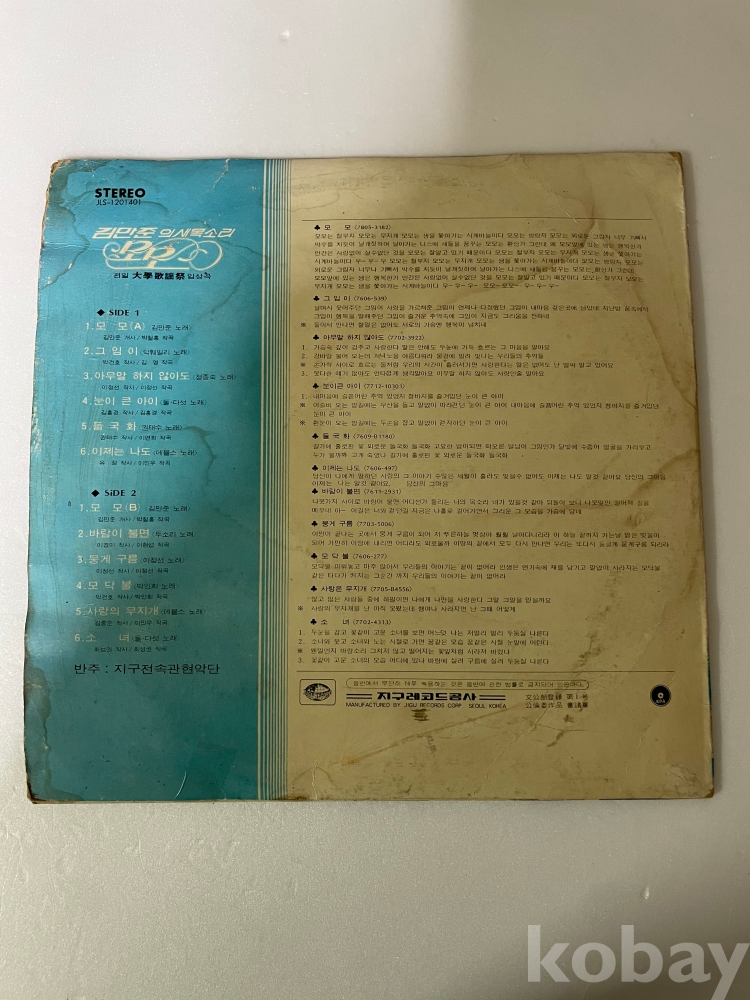 | 자켓상태 | VG : 주름, 접힘, 모서리 찢김 다수 | 음반상태 | EX : 재생에 영향 없는 가벼운 기스 존재 | 발매정보 | 알수없음 | 가사지여부 | 무 |