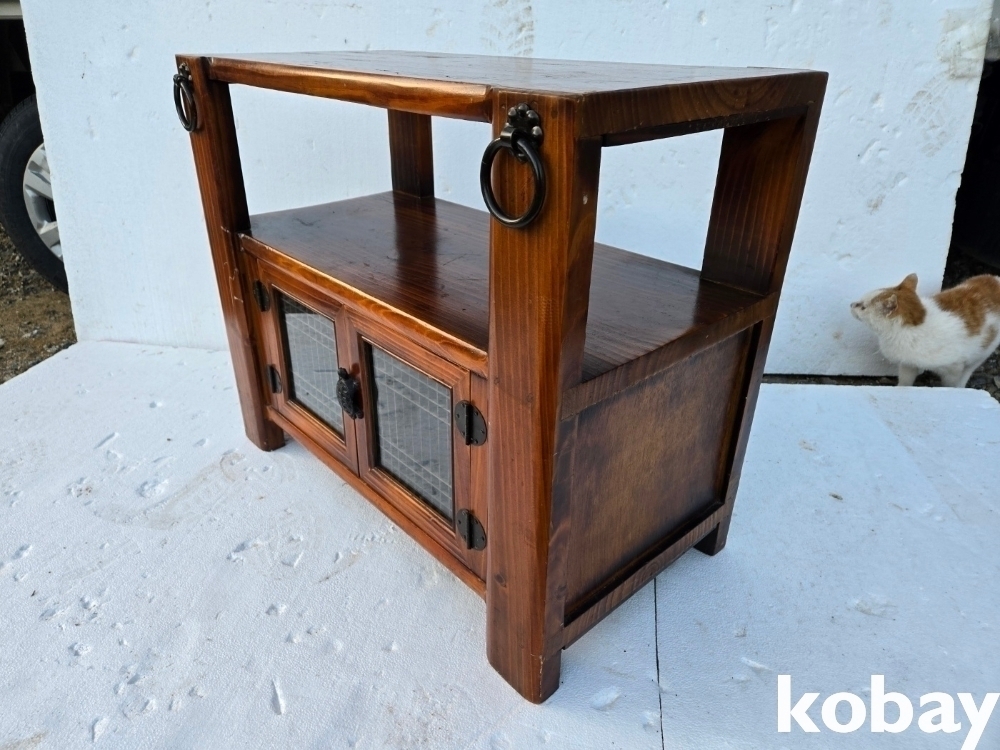 거북 장석에 유리 문이 있는 장식장 입니다.