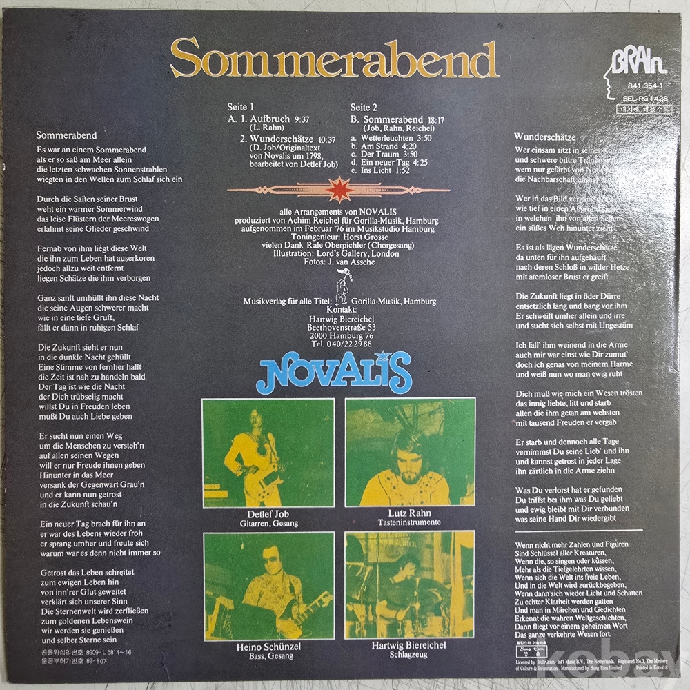LP) 노발리스 NOVALIS summerabend 독일이 낳은 서정파 그룹 최고 걸작앨범