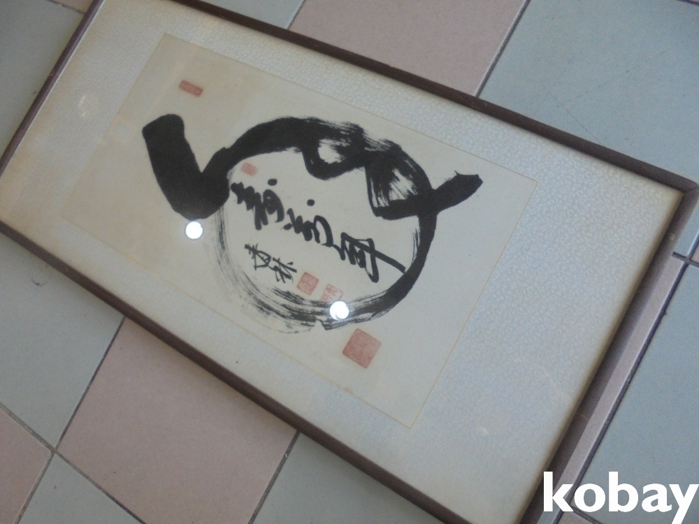 열쇠같은 표식안에 수만년살라고하는 특이한 청림 예술적인글씨와 액자